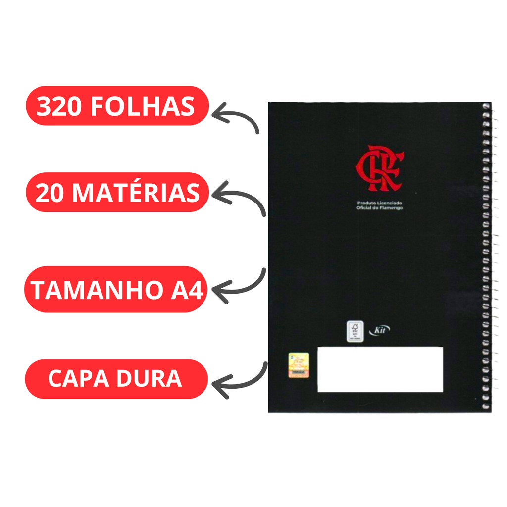 Caderno 20 Matérias Universitário 320 Fls Flamengo Capa:CRF