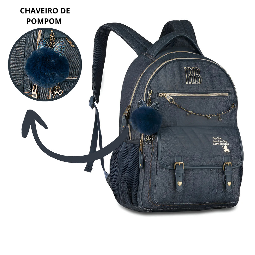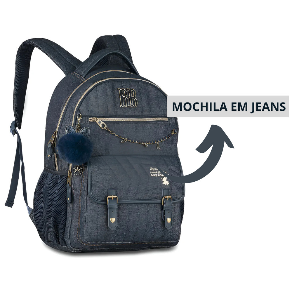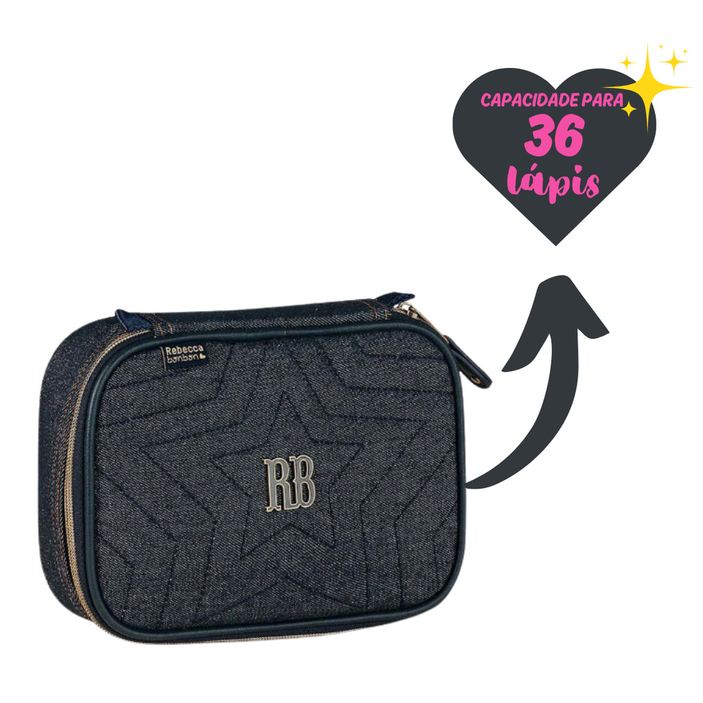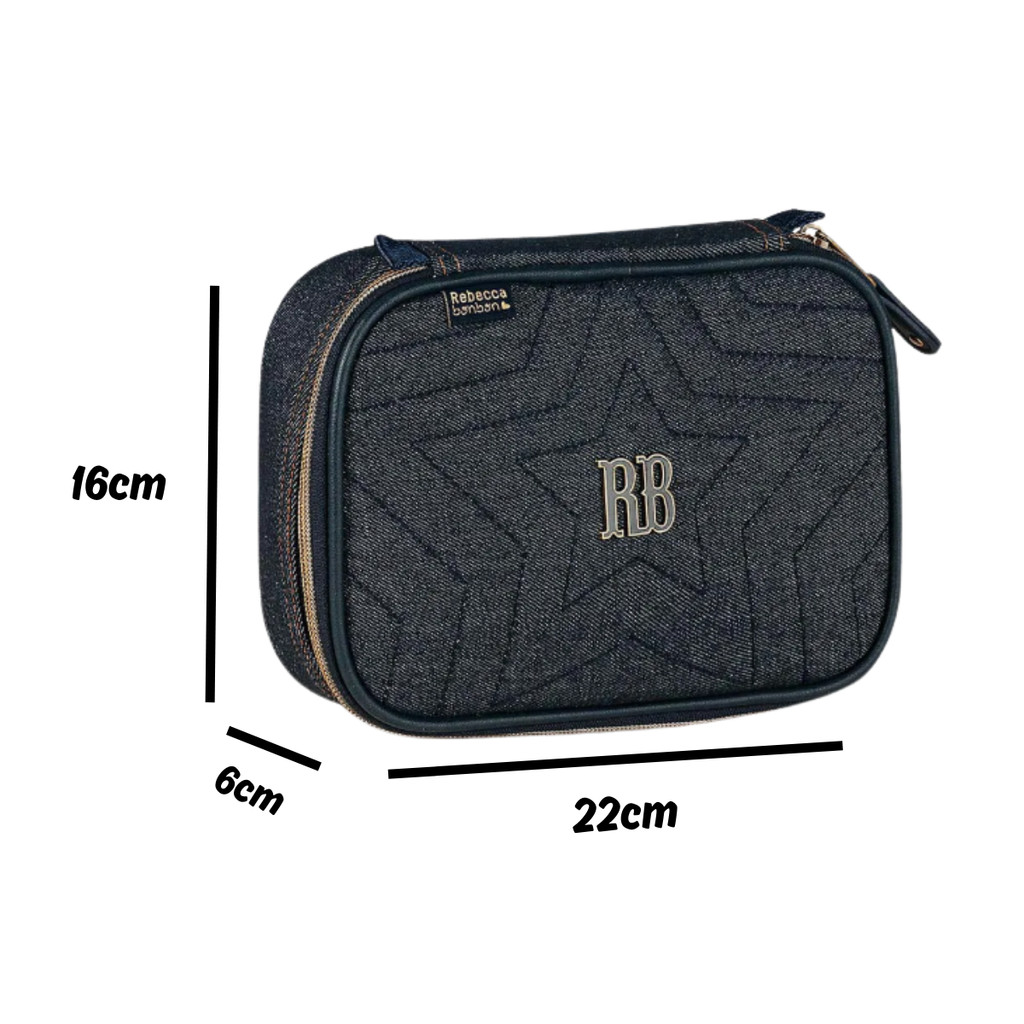 Kit de Mochila Costas e Estojo Rebecca Bonbon Jeans Vintage denim
