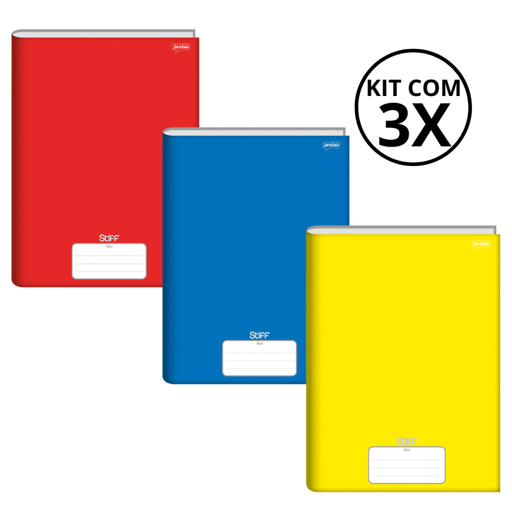 Kit Com 3 Caderno Brochura 96 Fls Pautado Capa Dura - Stiff