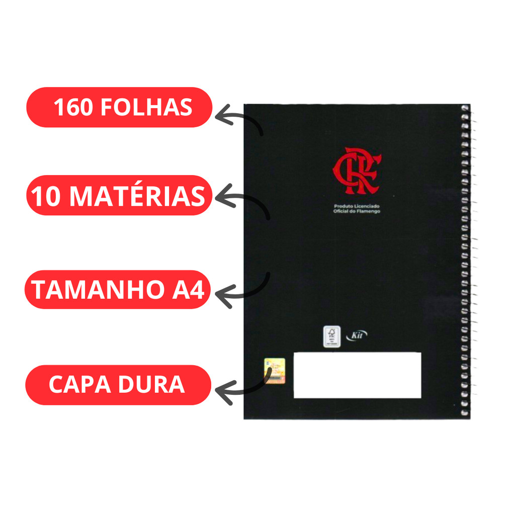 Caderno 10 Matérias Universitário 160 Folhas Flamengo Capa:Remo Branco