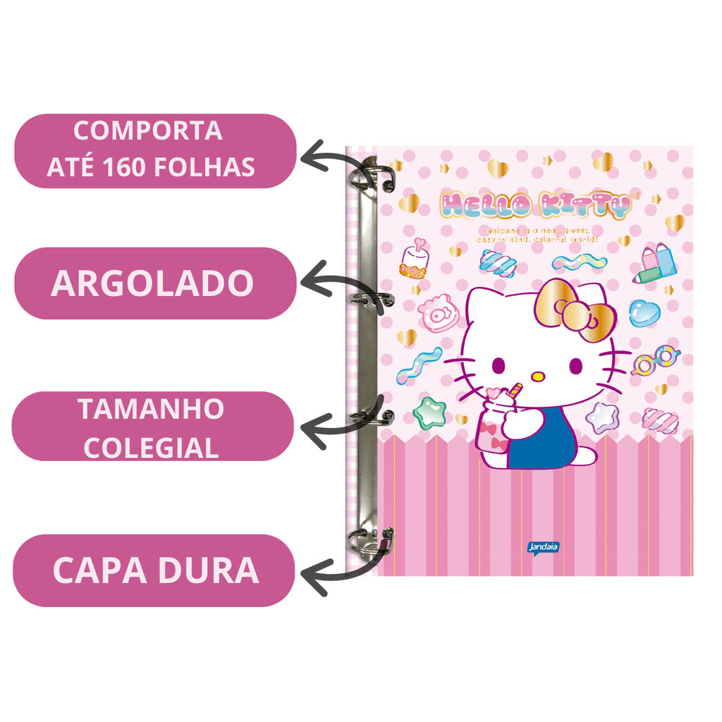 Caderno Argolado Colegial 80 Folhas 90g/m² Hello Kitty