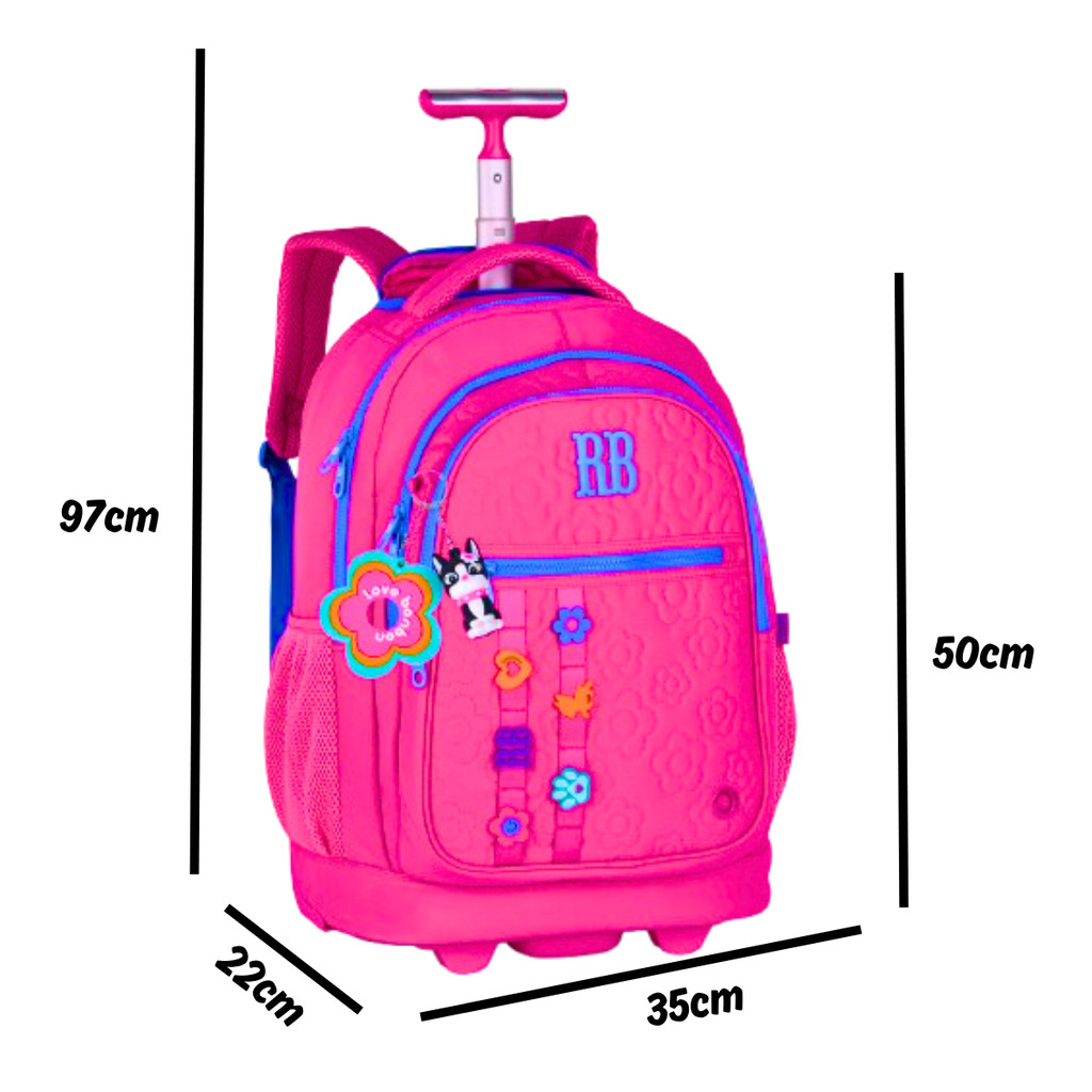 Kit Mochila de Rodinhas Com lancheira e Estojo Rebecca Bonbon Flower Power - Clio Style Cor:Rosa