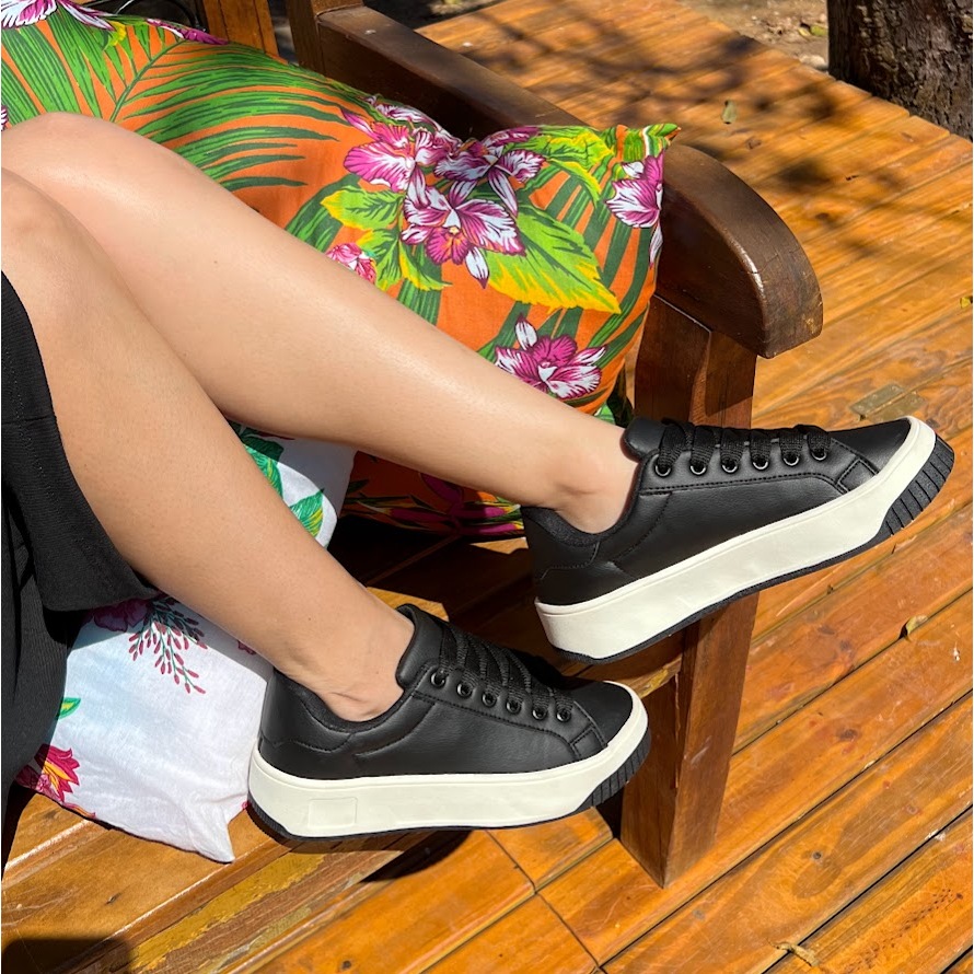 Tênis Feminino Casual Preto Moderno Dia a Dia Branco Confortavel