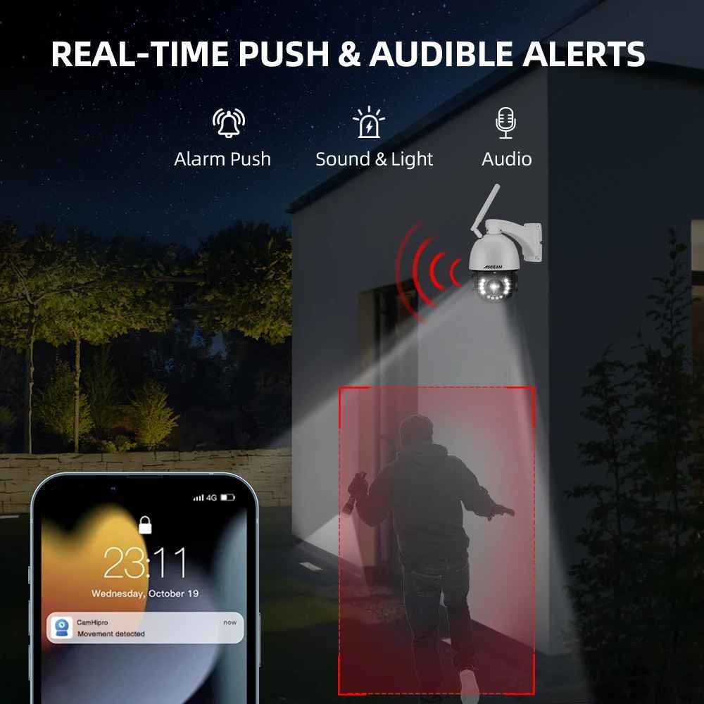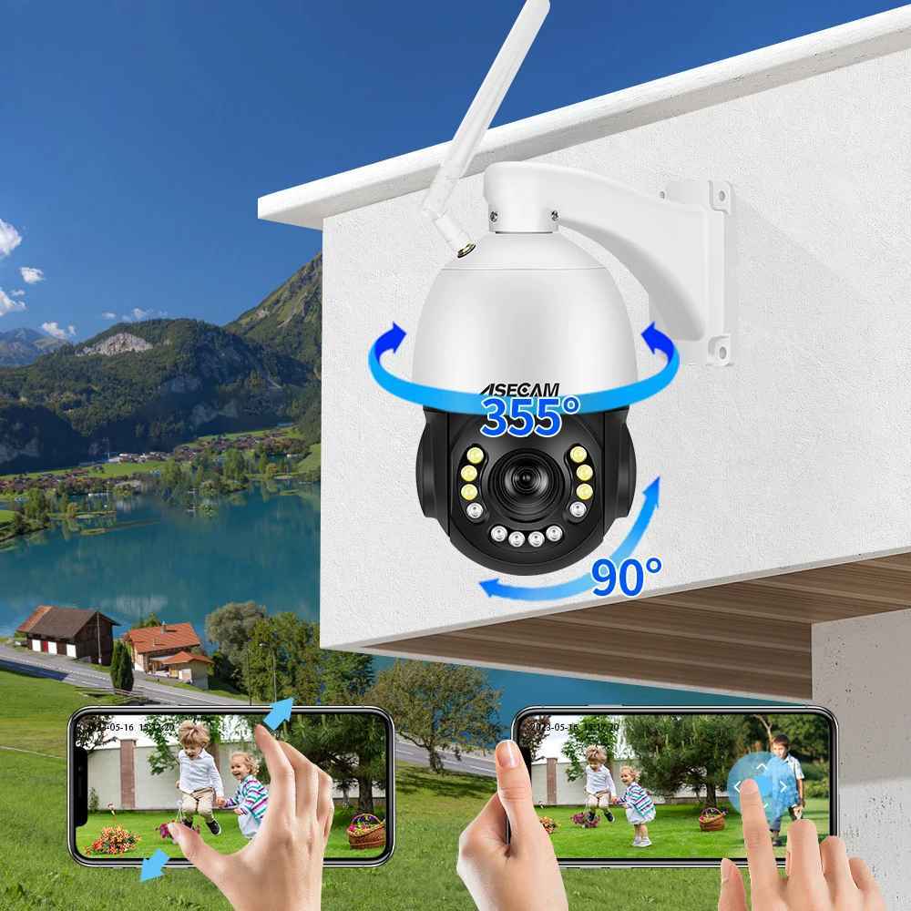 Câmera de Segurança Wifi 8MP 4K PTZ Zoom óptico 30x Externo IA Rastreamento Áudio Visão Noturna 360°