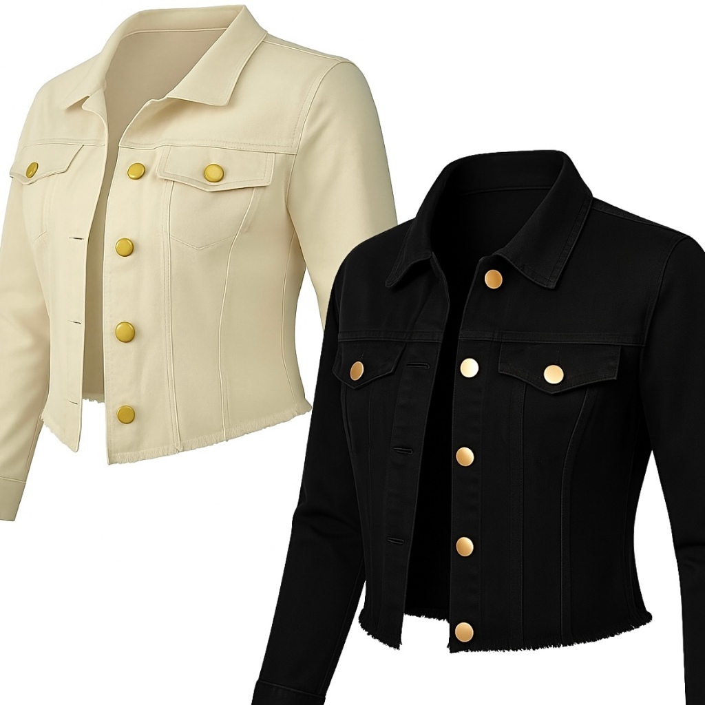 Kit 2 Jaquetas Jeans Feminina Linha Premium Denim Manga Longa