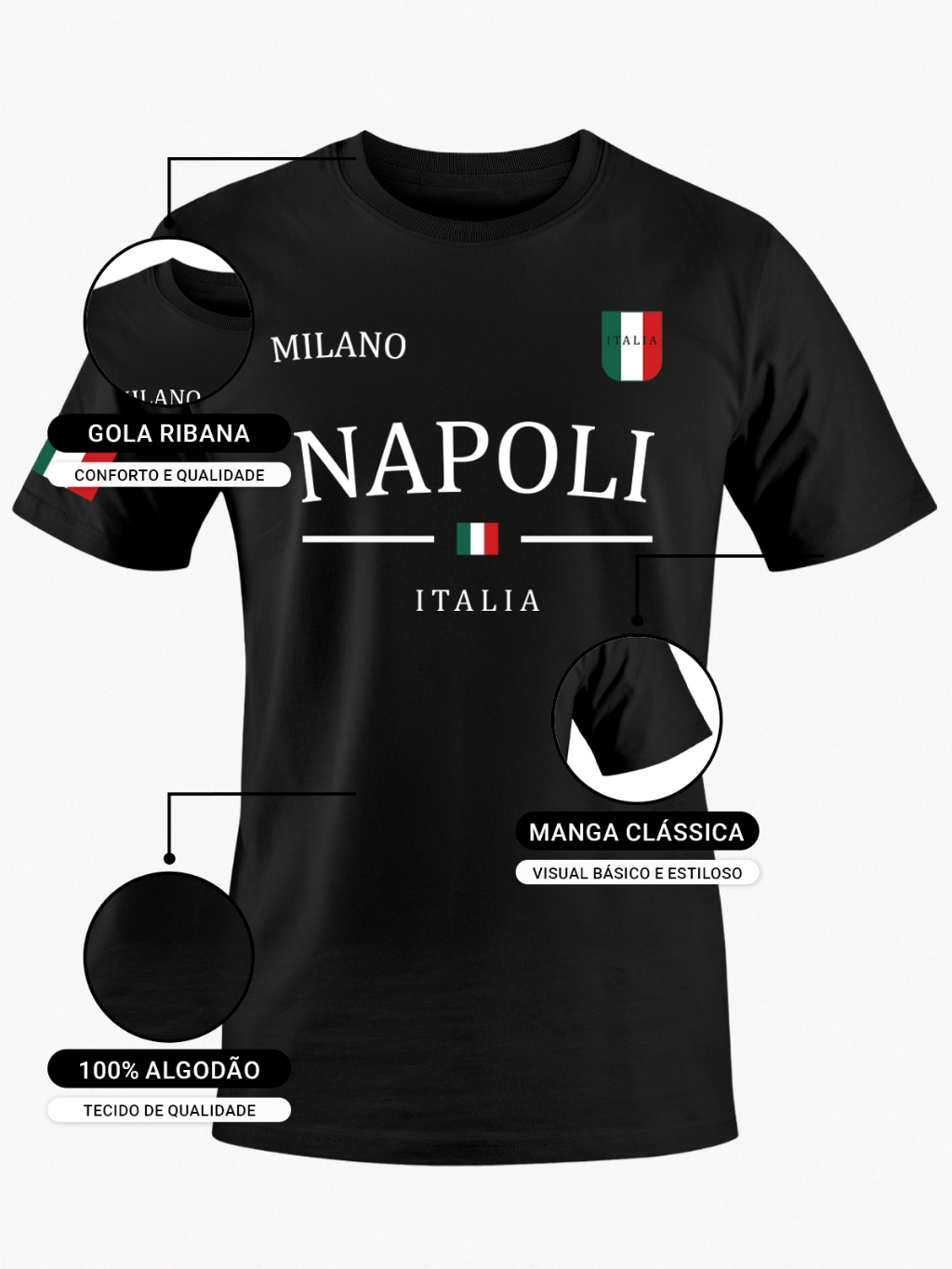 Camiseta Itália Napoli Tshirt Premium Masculina 100% Algodão Tamanho Plus Size Disponíveis