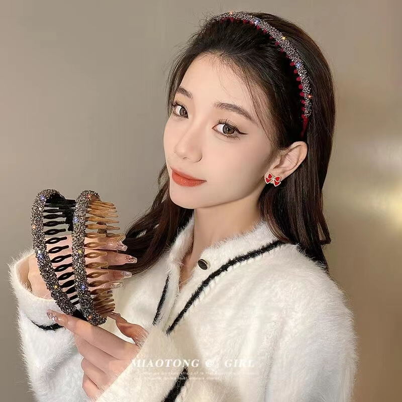 Pulseira De Cabelo De Diamante Brilhante De Pelúcia Coreana Única Com Dentes Para Acessórios Deslocamento Feminino