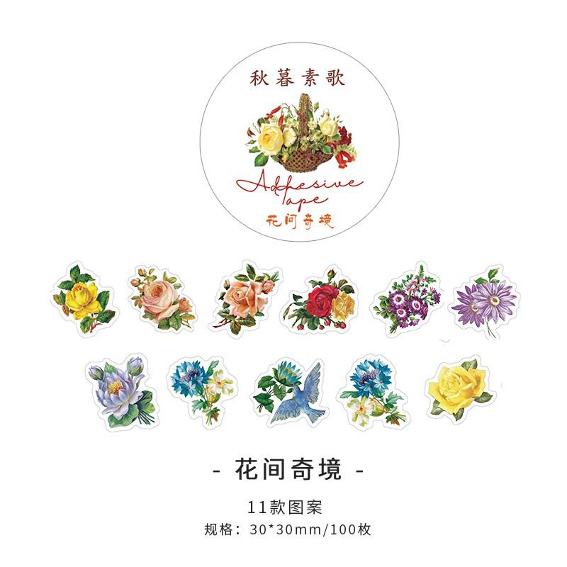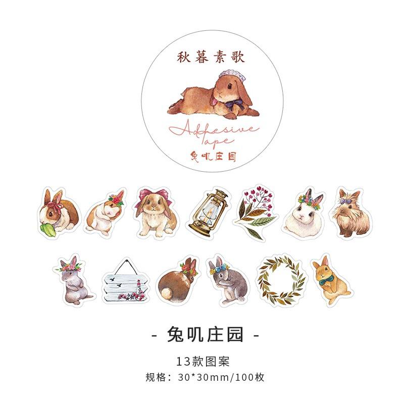 100pcs Adesivos Autocolantes De Fita Adesiva Washi Para Animais Florestais De Outono Rolos De Decoração Diy