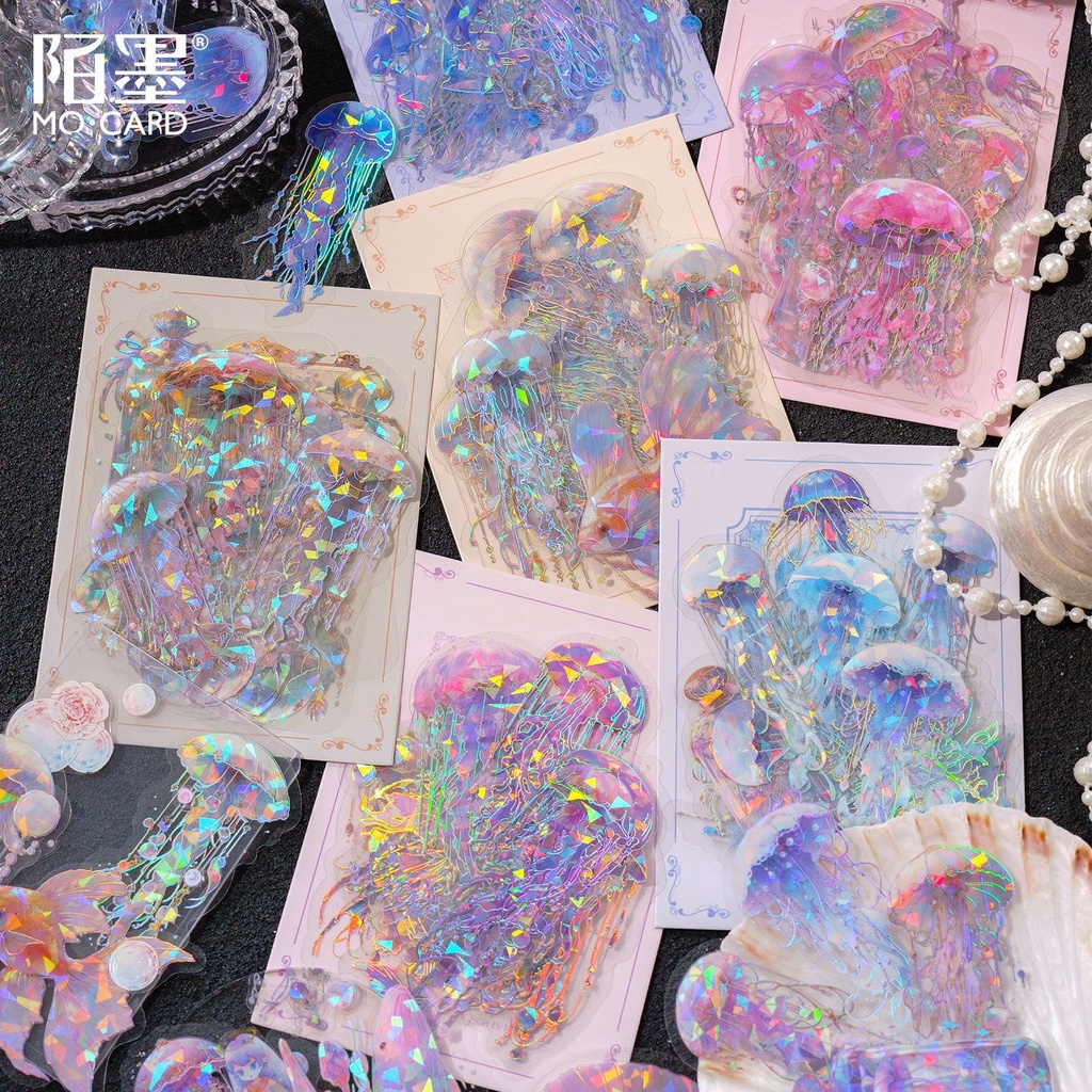 20 Pcs Jellyfish Themed Scrapbooking Journaling Sticker Série Marinha Folha De Ouro Transparente Adesivos À Prova D'água Para Crianças Adultas