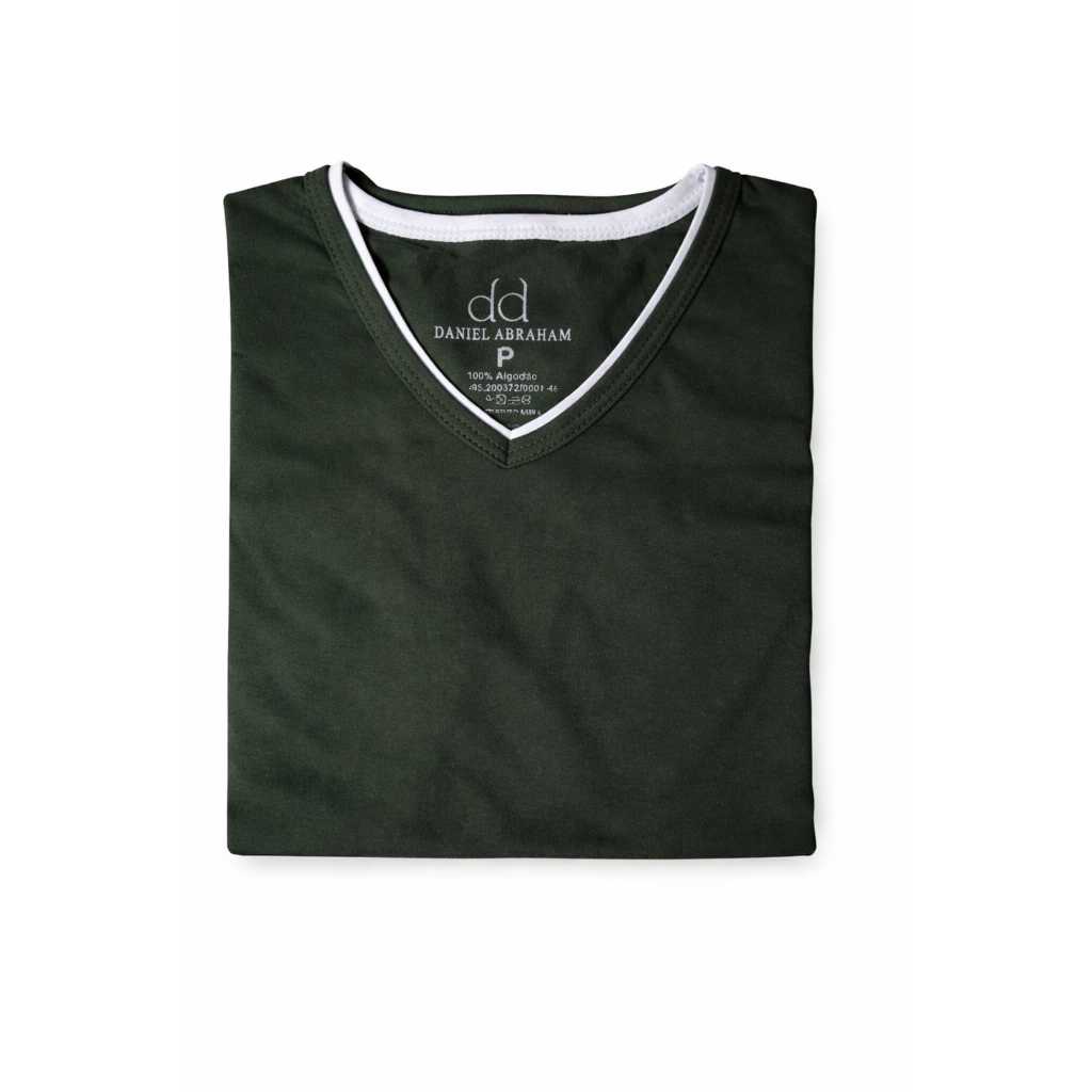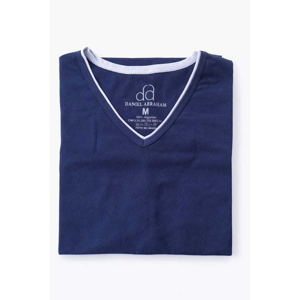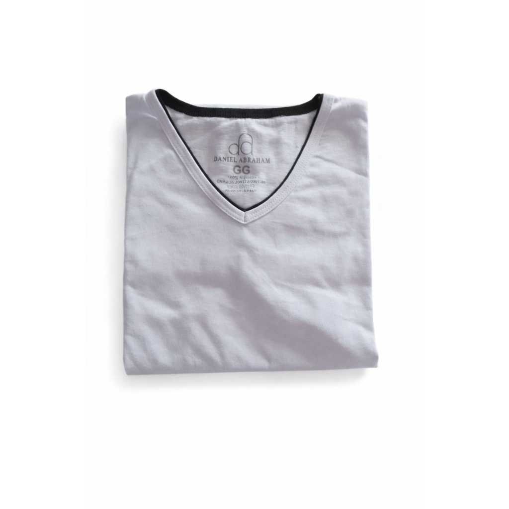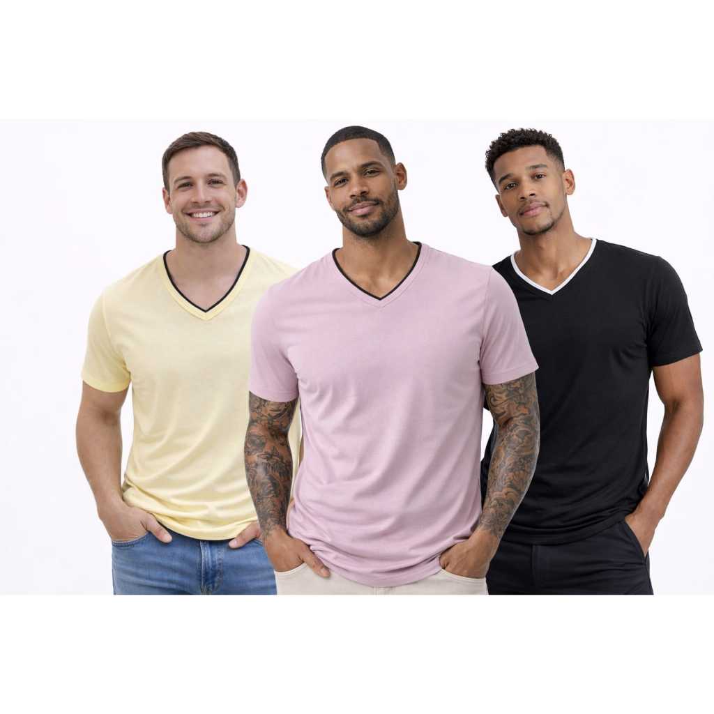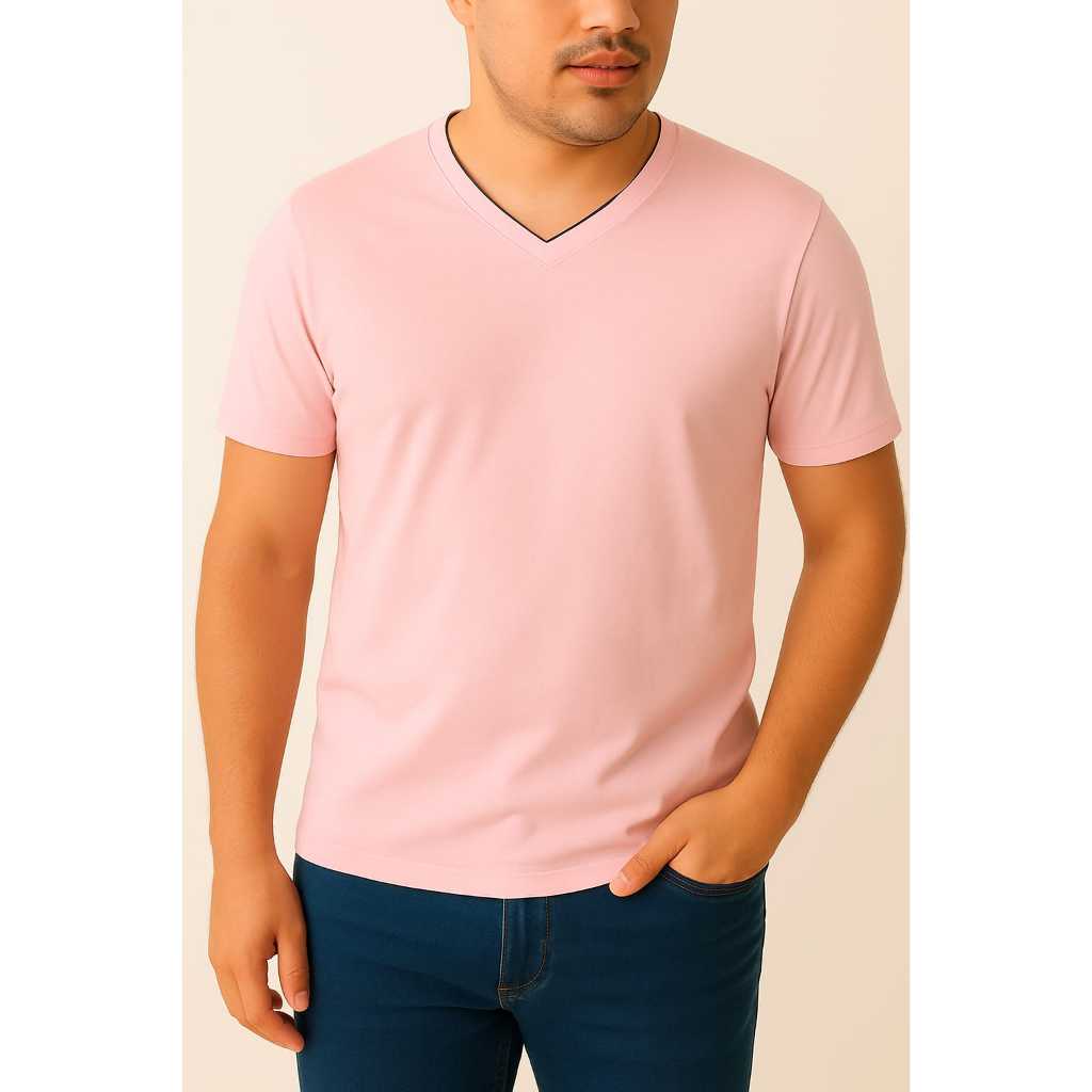 Mais de 10 Cores %100 Algodão Camiseta Masculina Básica Gola V Dupla Viés Premium