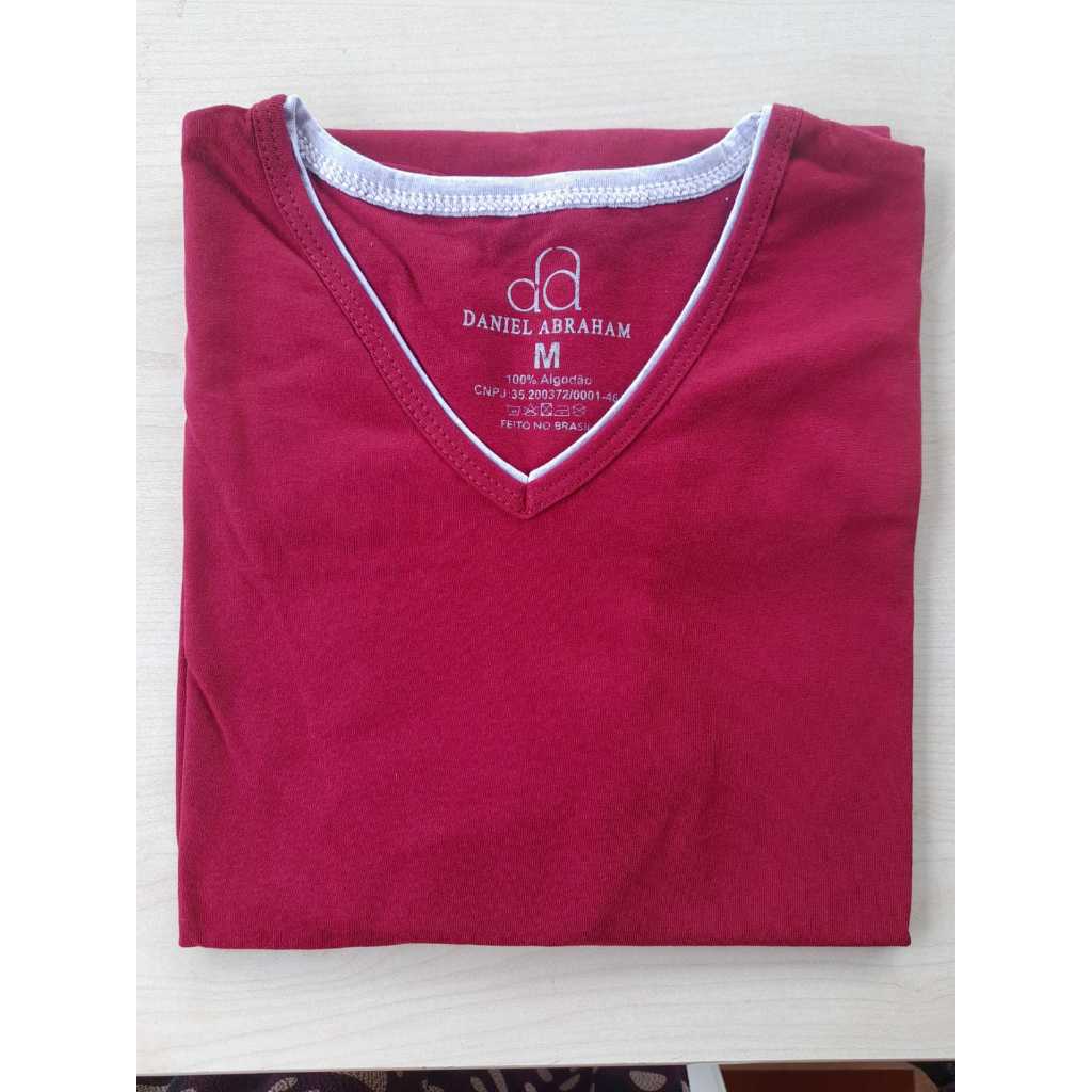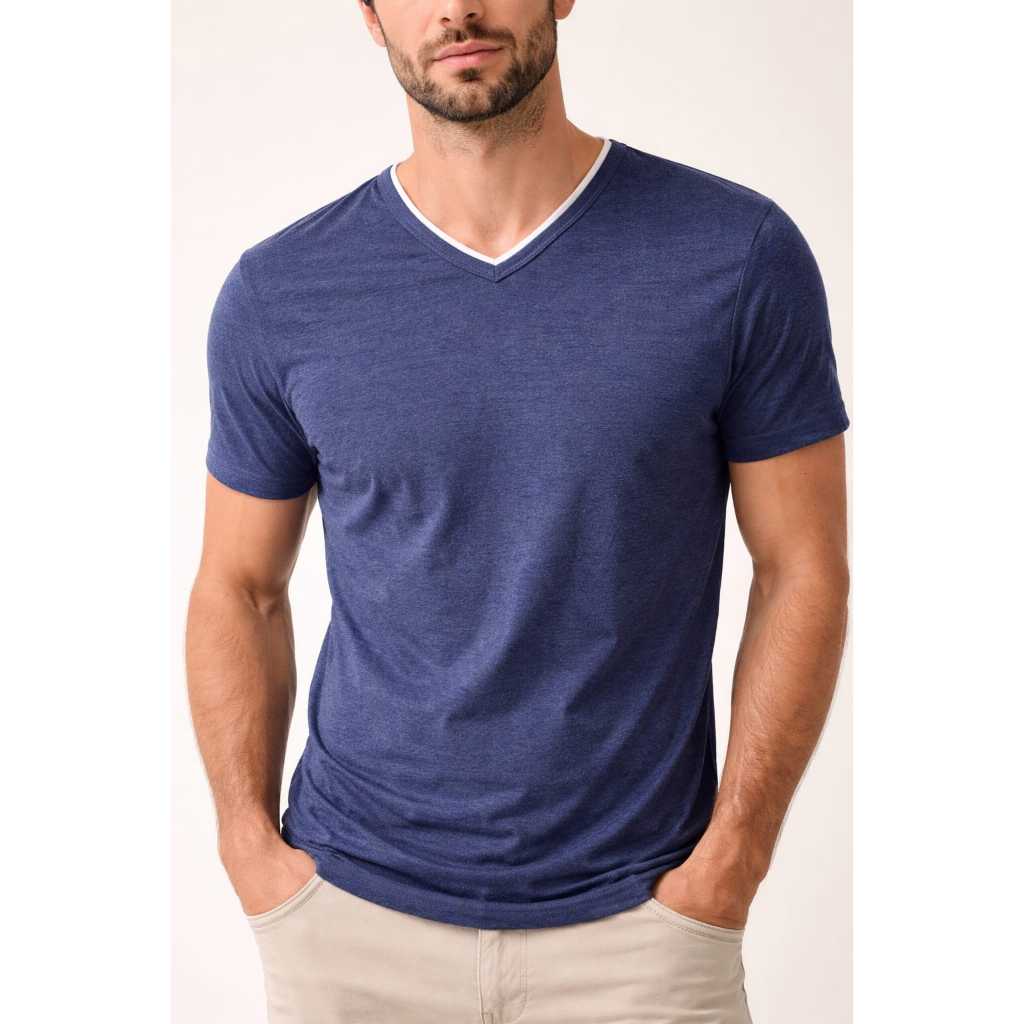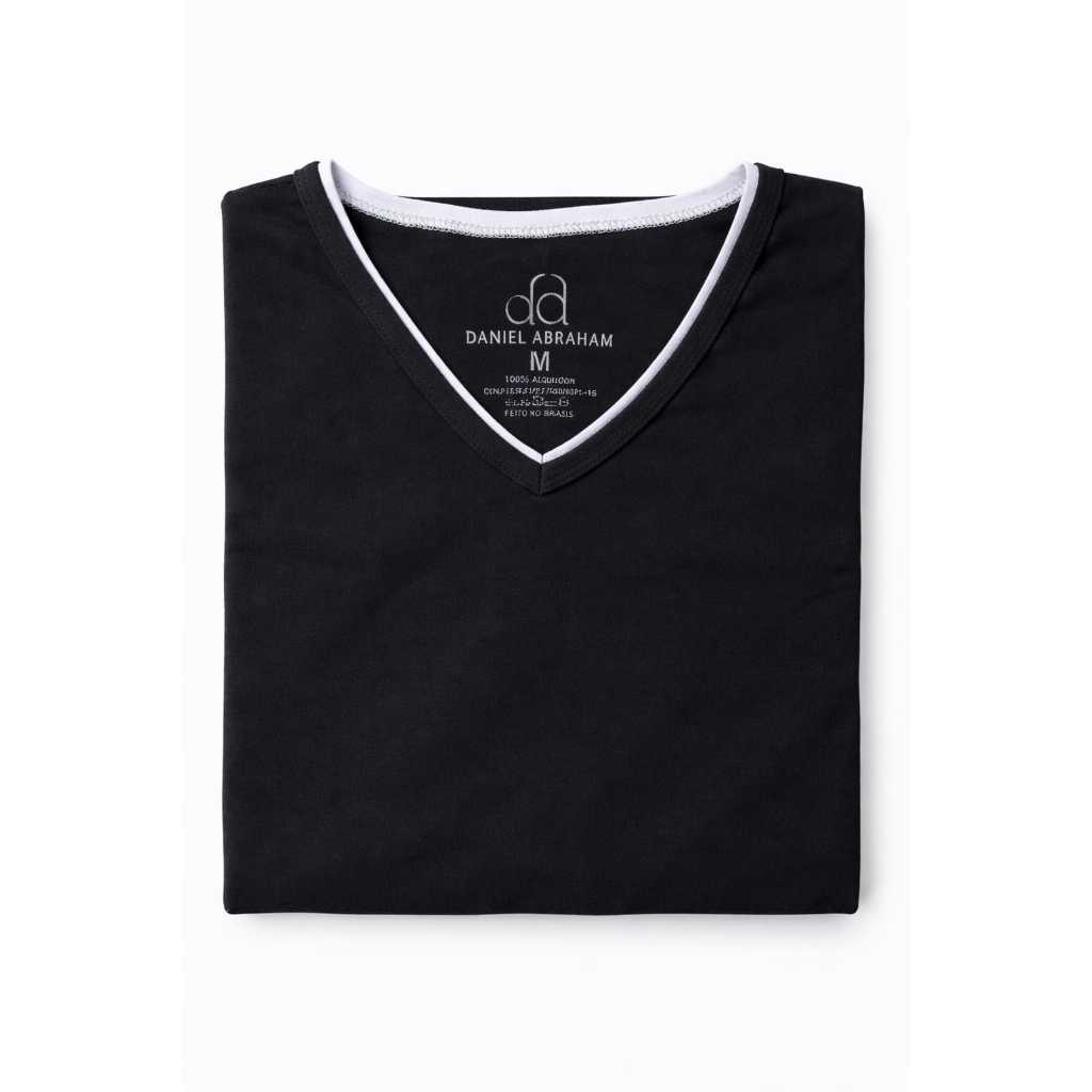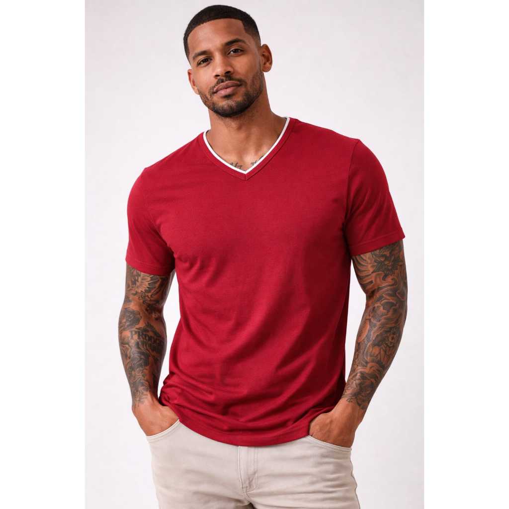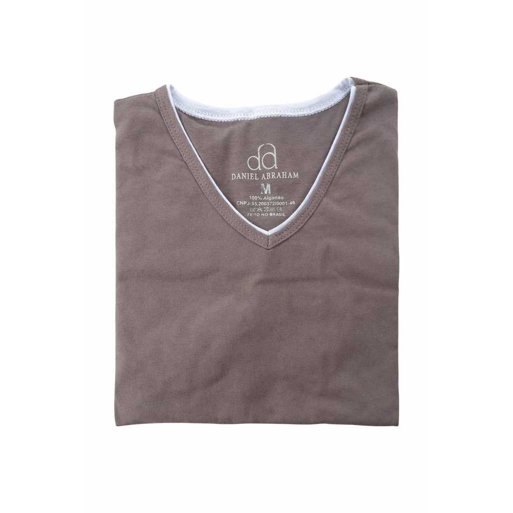 Mais de 10 Cores %100 Algodão Camiseta Masculina Básica Gola V Dupla Viés Premium