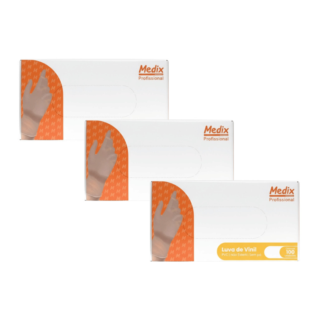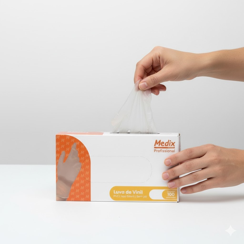 Luva de Vinil Descartável Medix Sem Pó em PVC – Tamanho GG | Caixa com 100 a 500 Unidades