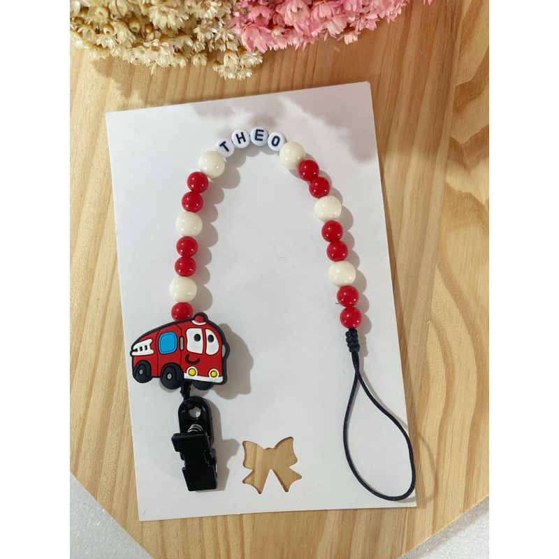 Prendedor de chupeta personalizado com tema e nome para menino carros