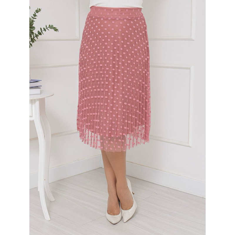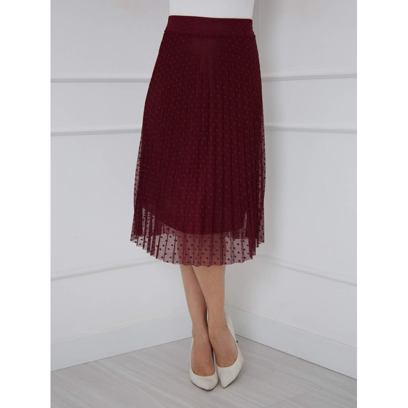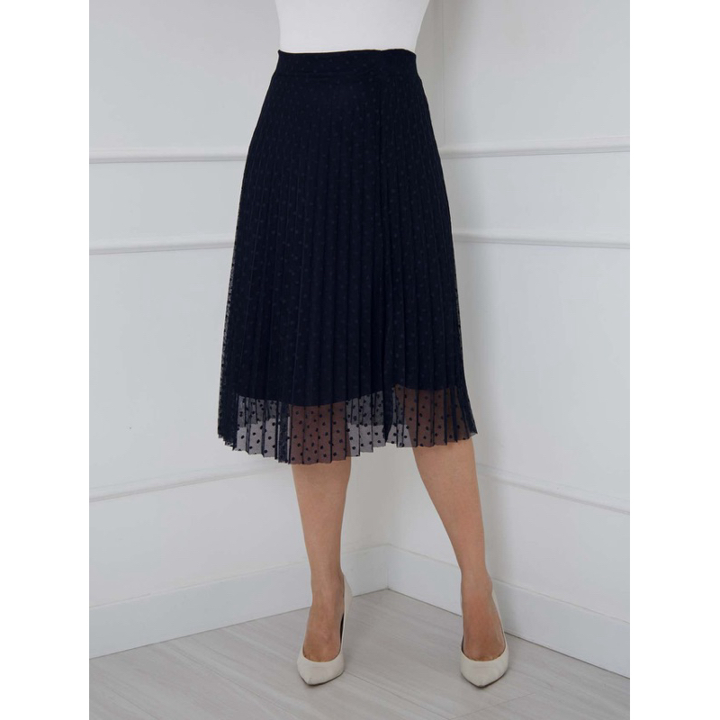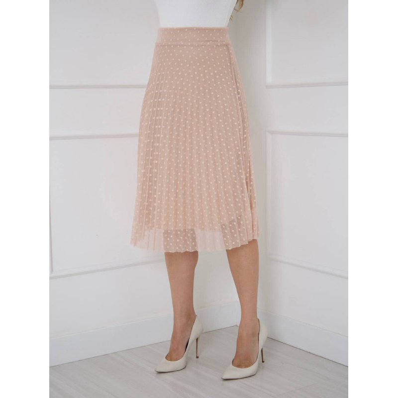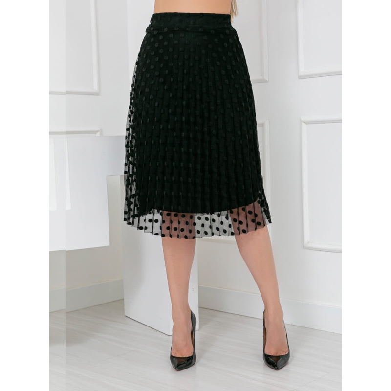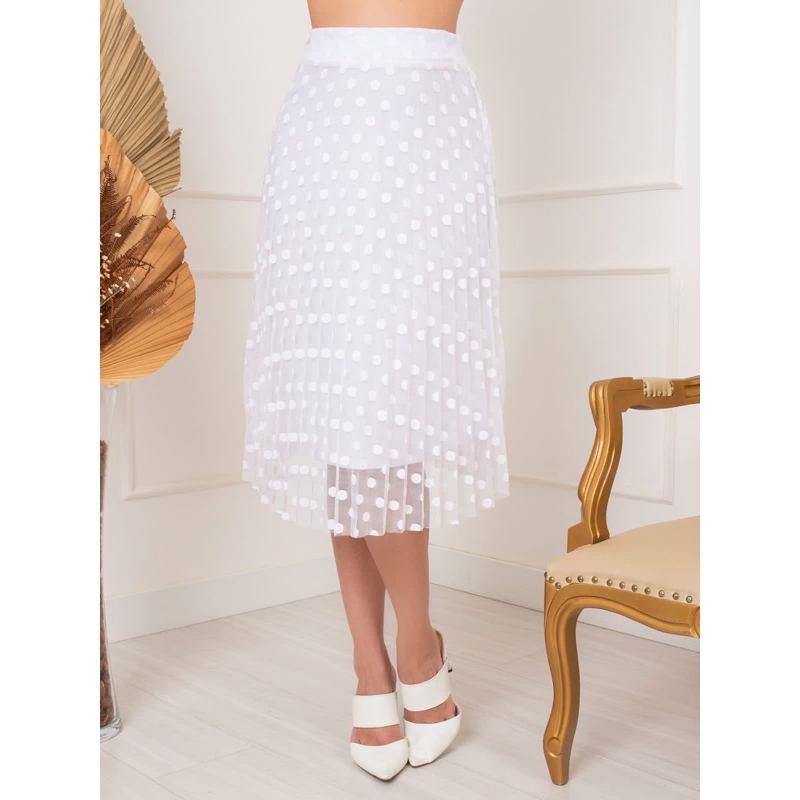 saia plissada midi moda evangélica tule poa com forro e elástico na cintura cod128