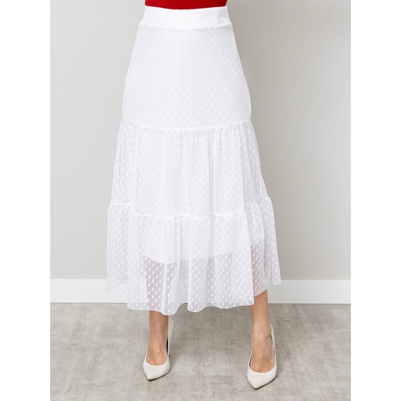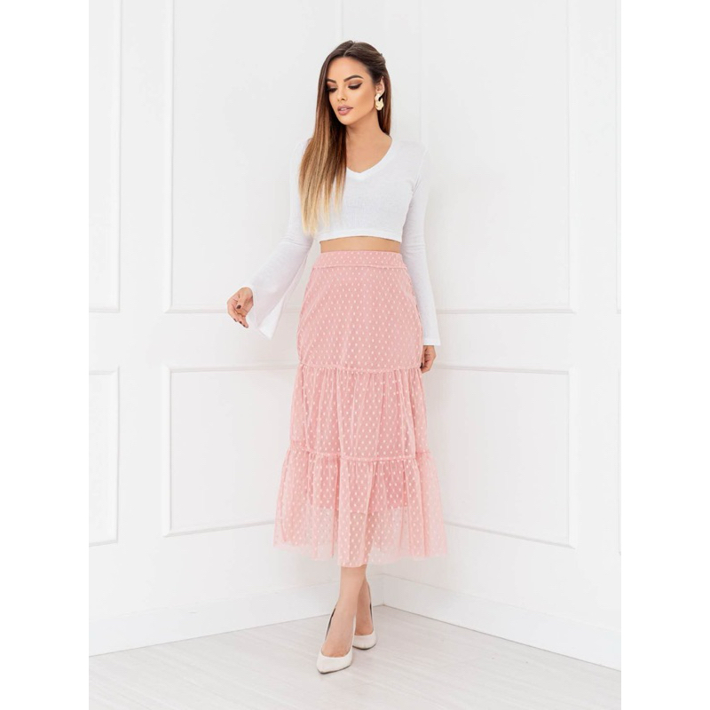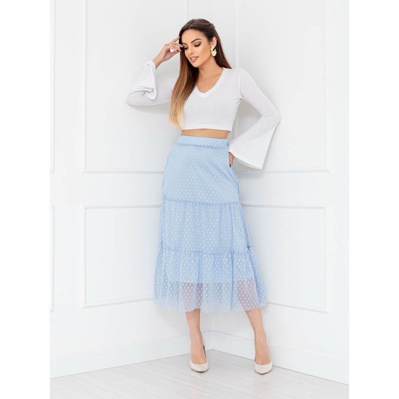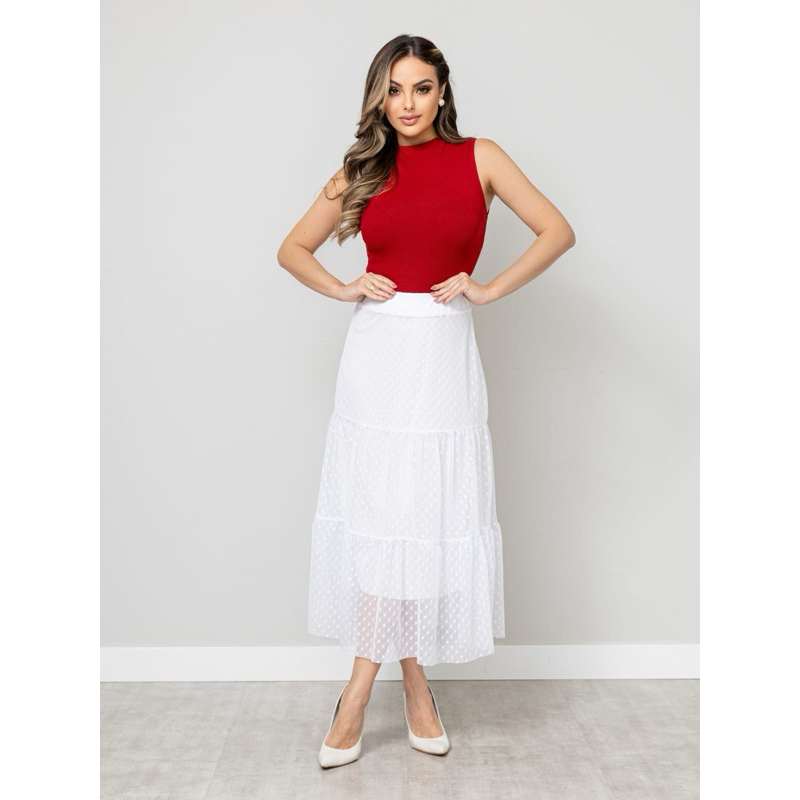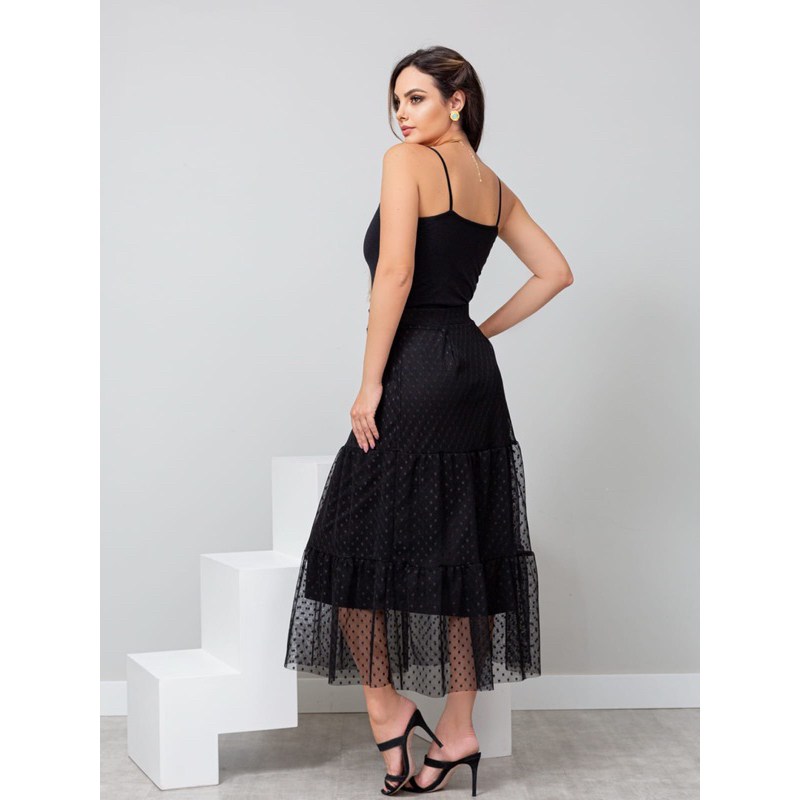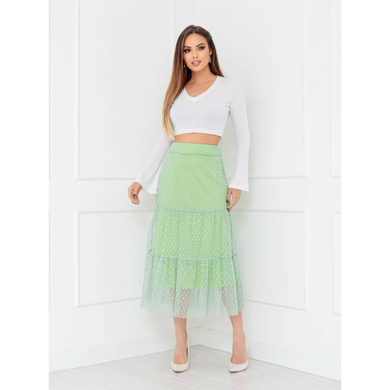 Saia Babado 3 Maria Tule Poá cintura com elástico COD: 157