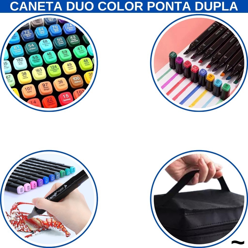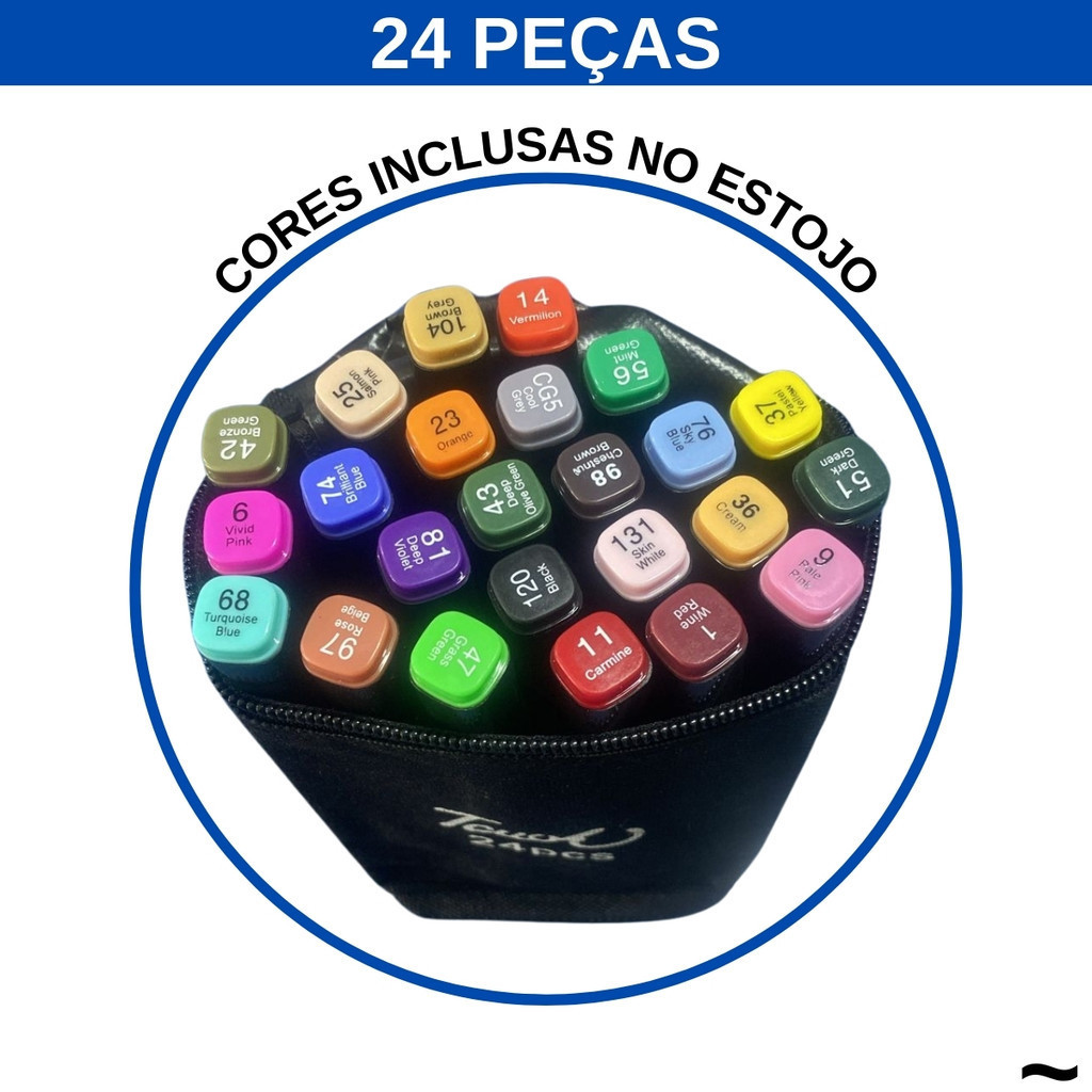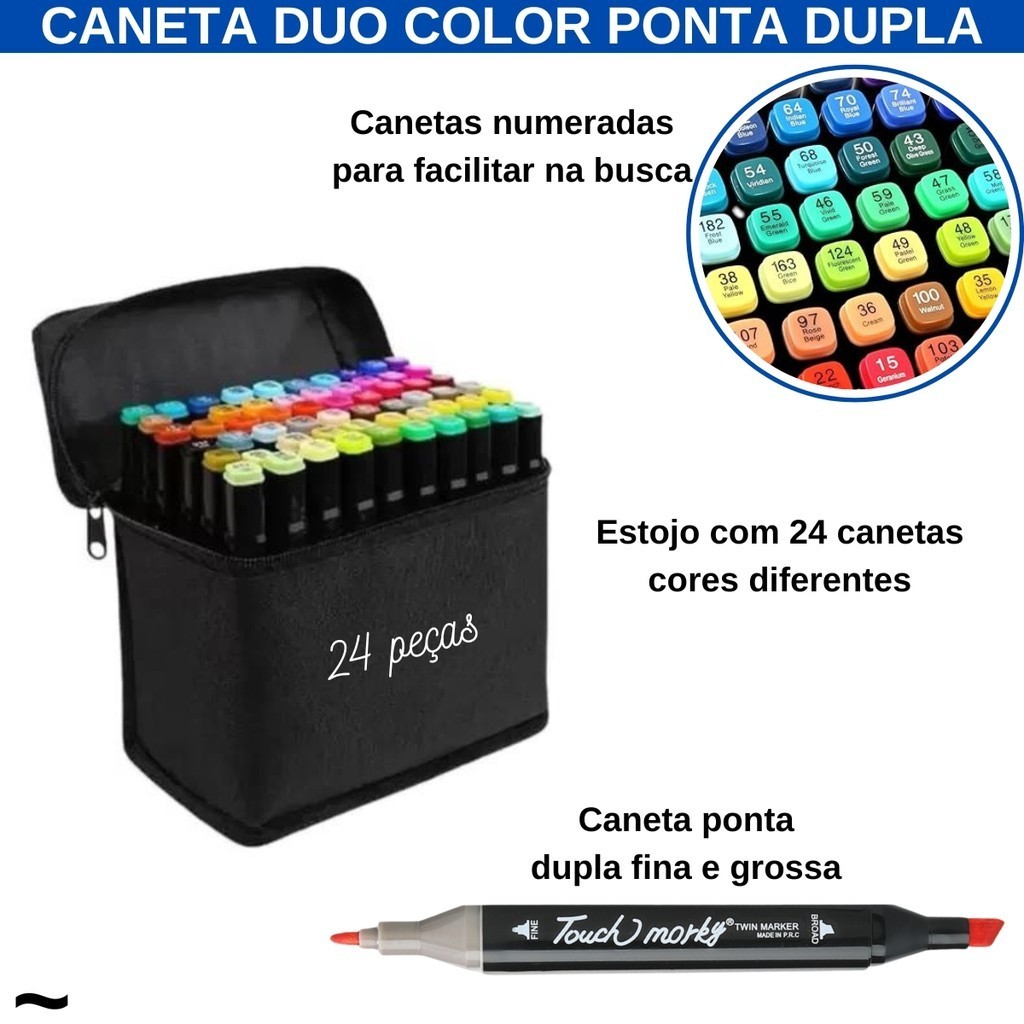 Kit 24 Peças Caneta Marcadora Com Ponta Dupla Pintura Material Escolar Estojo