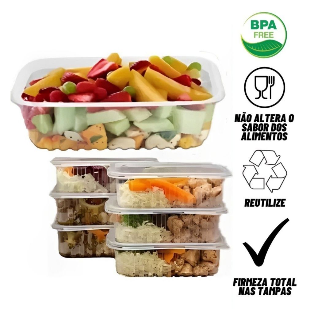 Pote Embalagem Marmita Descartavel Rentagular Plastico 500ml 400ml 250ml 750-ml Comida Fitness