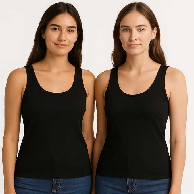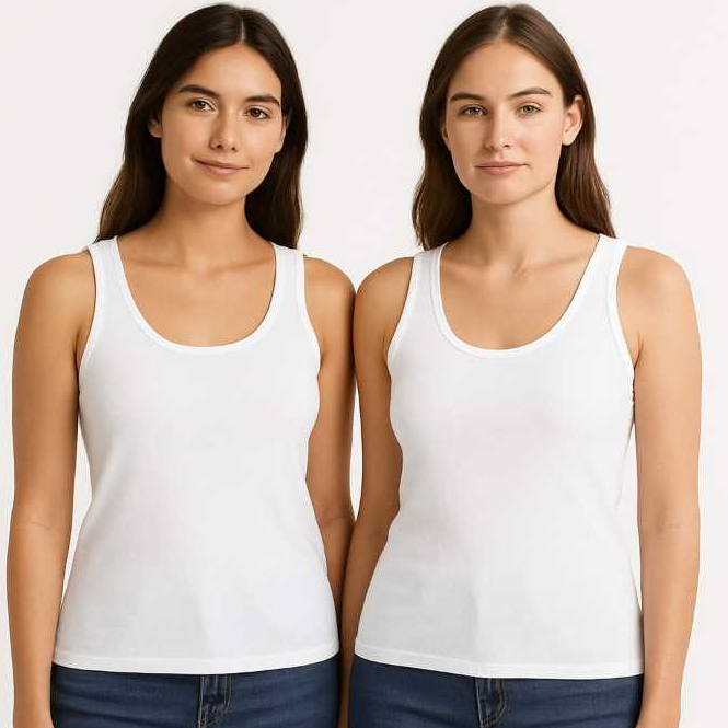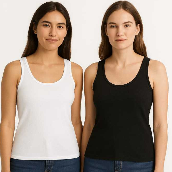 KIT 2 BLUSAS REGATA FEMININA 100% ALGODÃO BÁSICA CAMISETA LISA PRETA E BRANCA