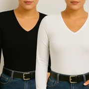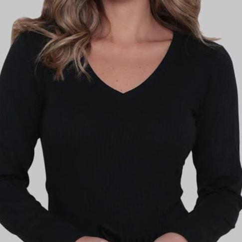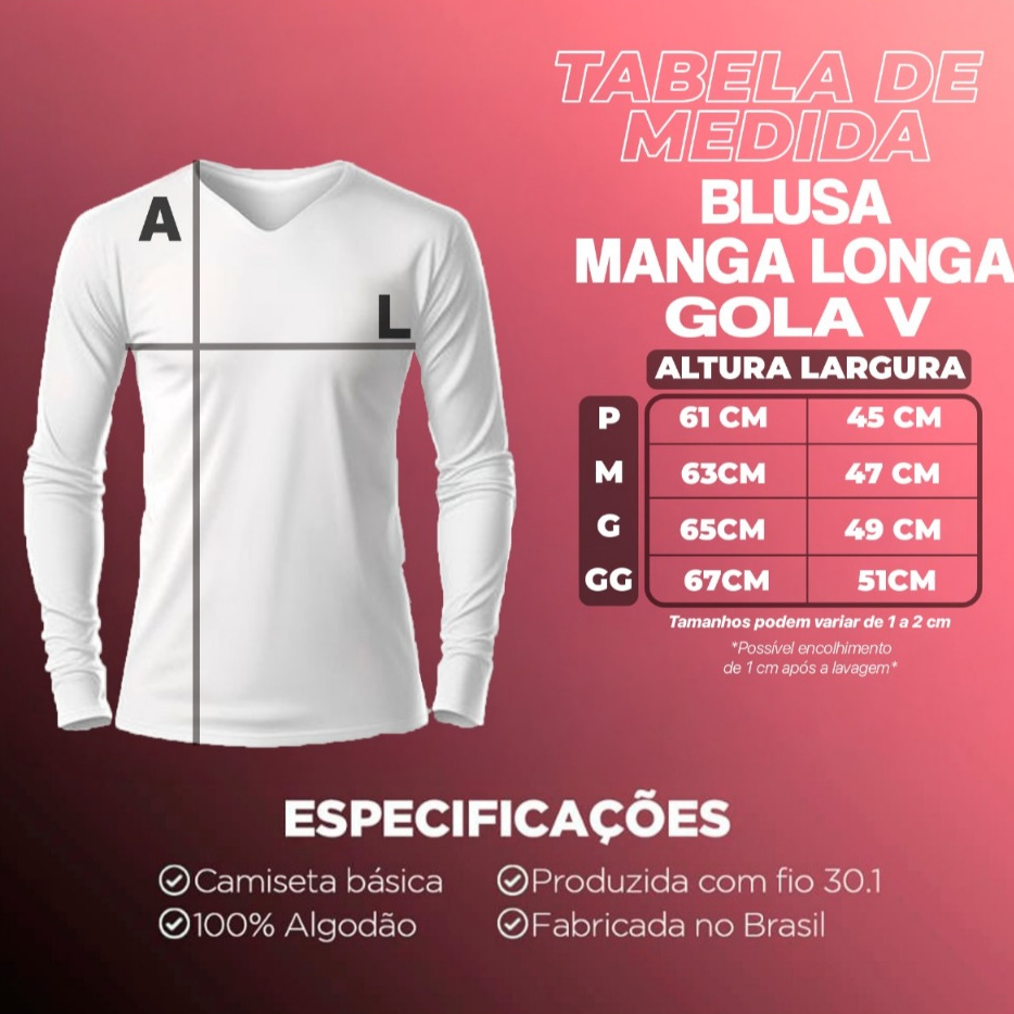 KIT 2 BLUSAS FEMININA MANGA LONGA GOLA V CAMISETA 100% ALGODÃO BÁSICA LISA