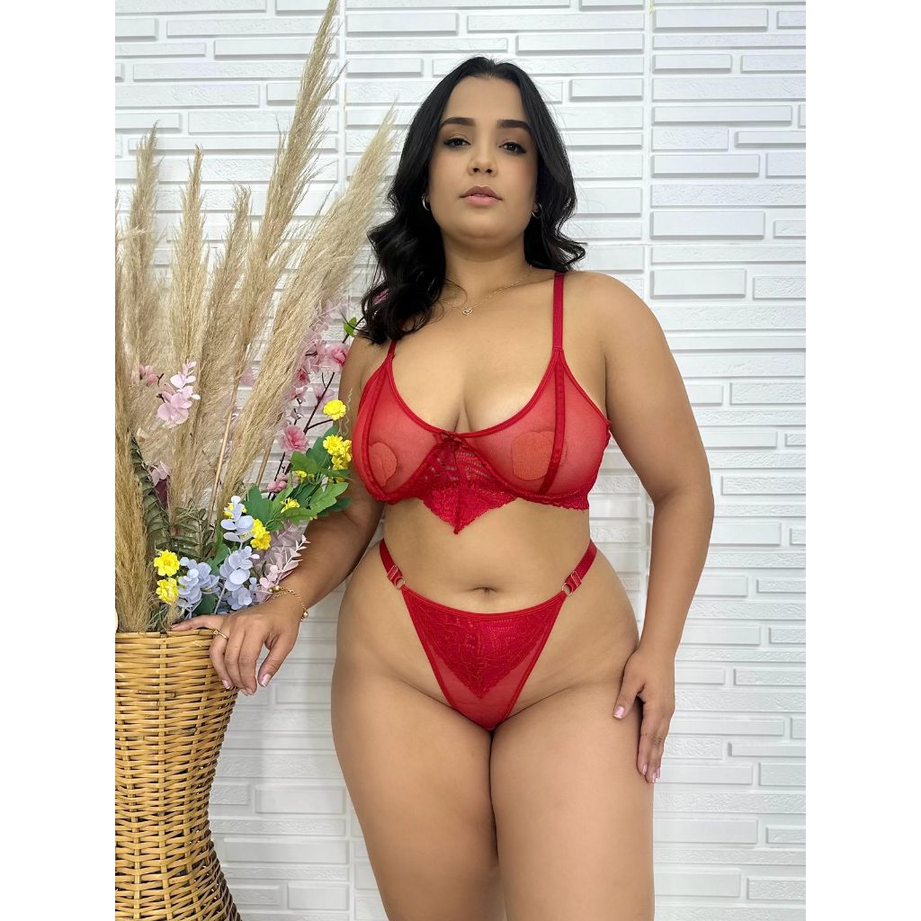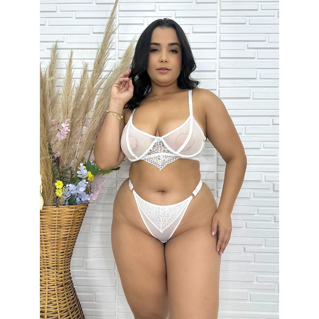 Conjunto plus size calcinha e sutiã renda e tule Paris