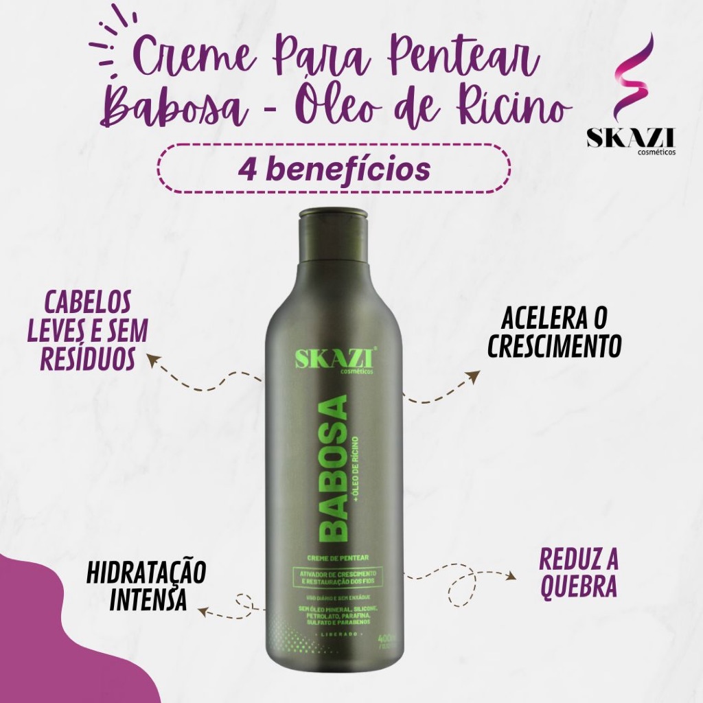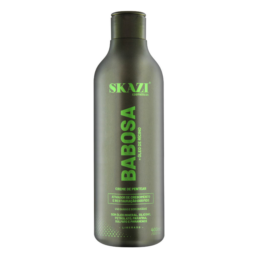 Creme de Pentear Vegano Skazi 400ml – Babosa e Óleo de Rícino – Liberado, Hidratação e Brilho