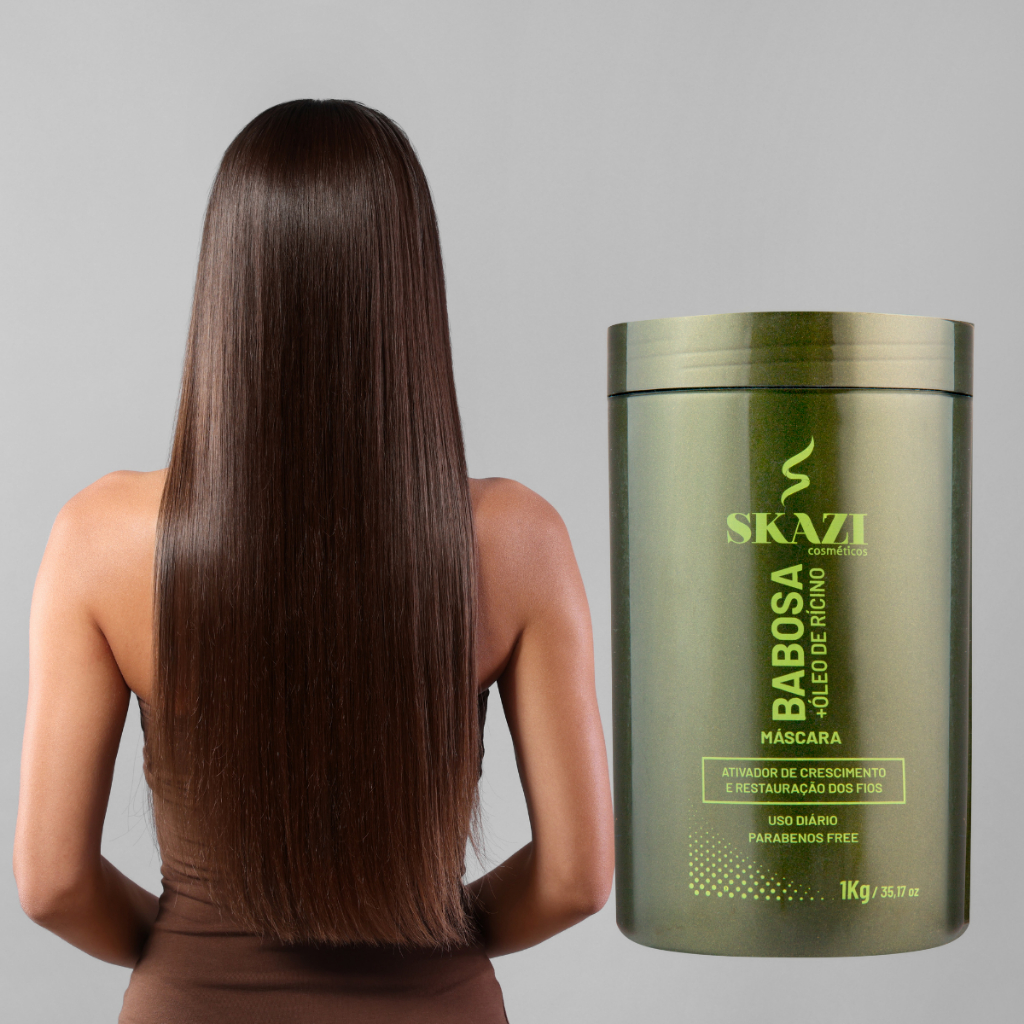 Kit Shampoo Condicionador E Mascara Skazi Babosa e Ricino 1L