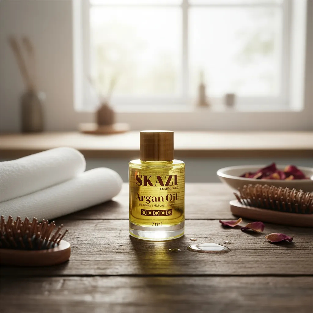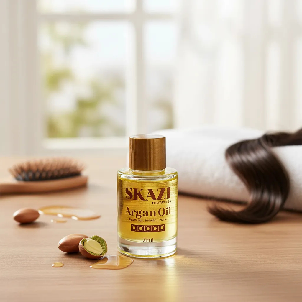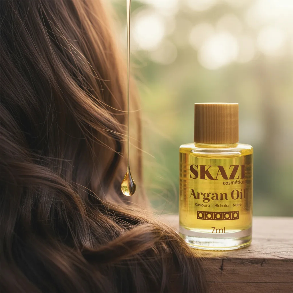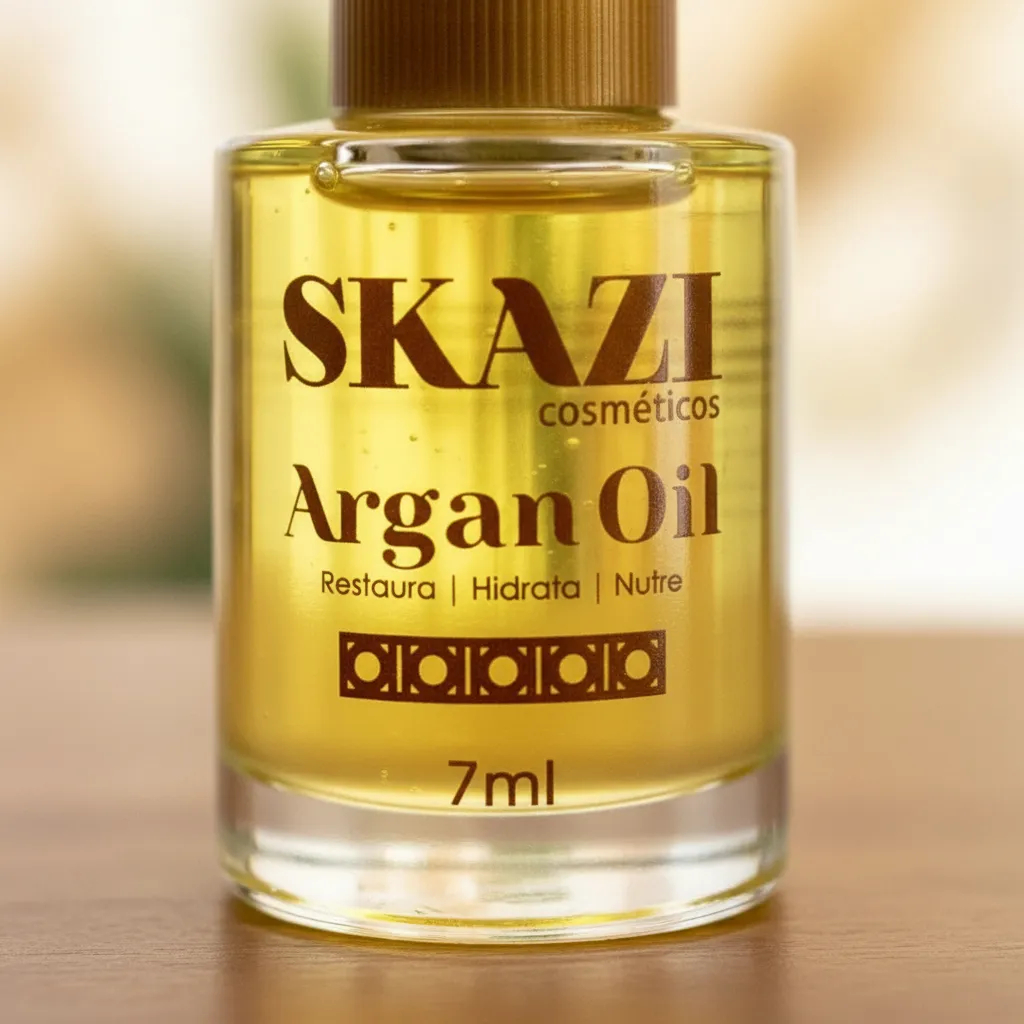 Kit 3 Óleos de Argan Skazi 7ml – Proteção Térmica, Anti-Frizz, Brilho Intenso – Vegano | Envio Imediato
