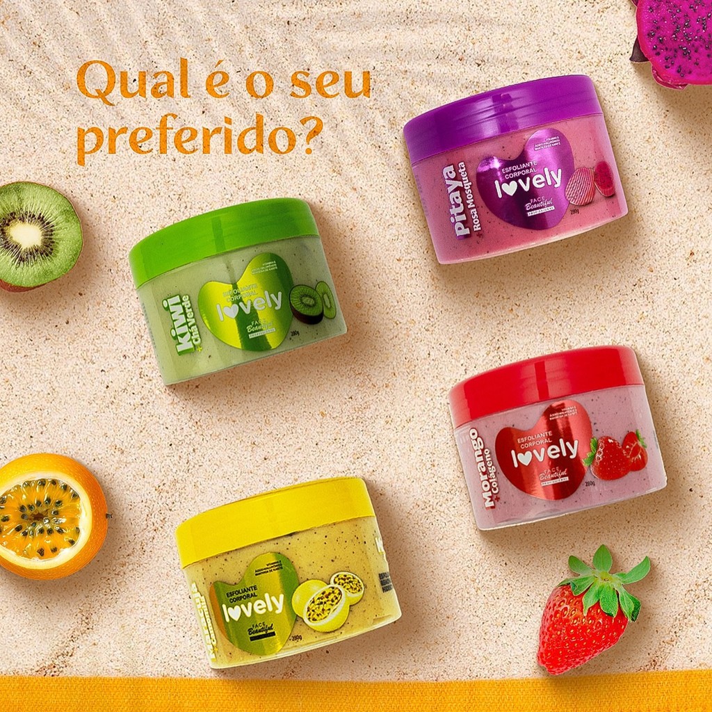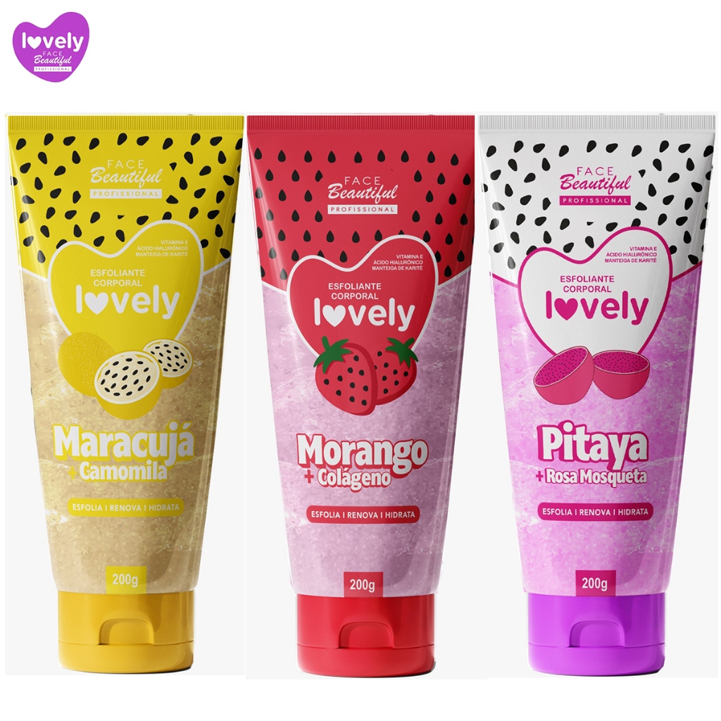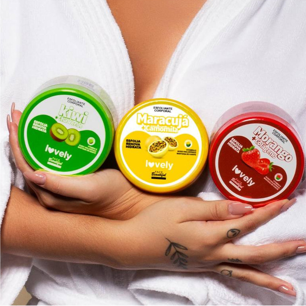 Kit Esfoliantes Corporal Pele Macia Cheiro de Frutas Lovely Face Beautiful