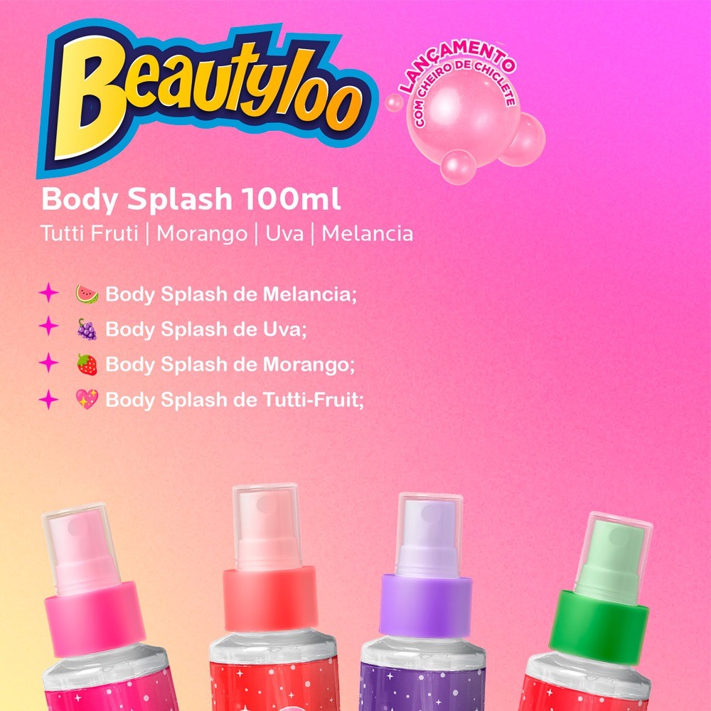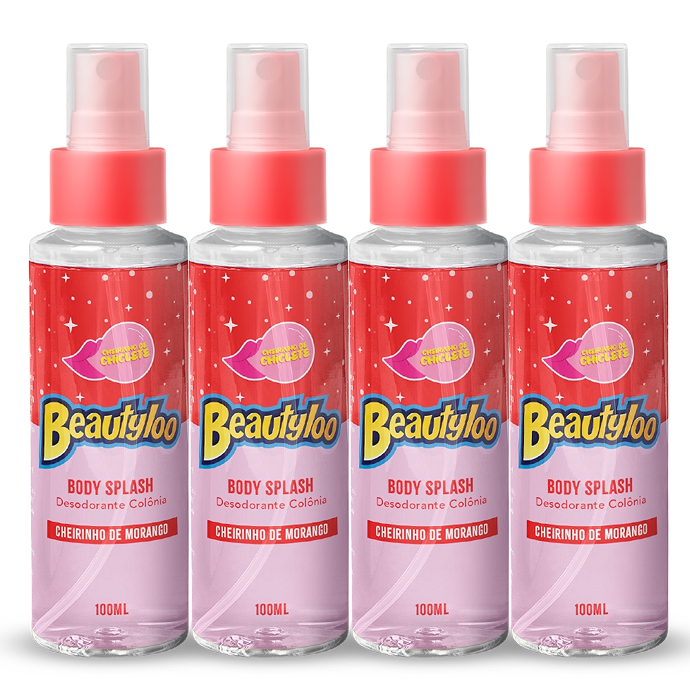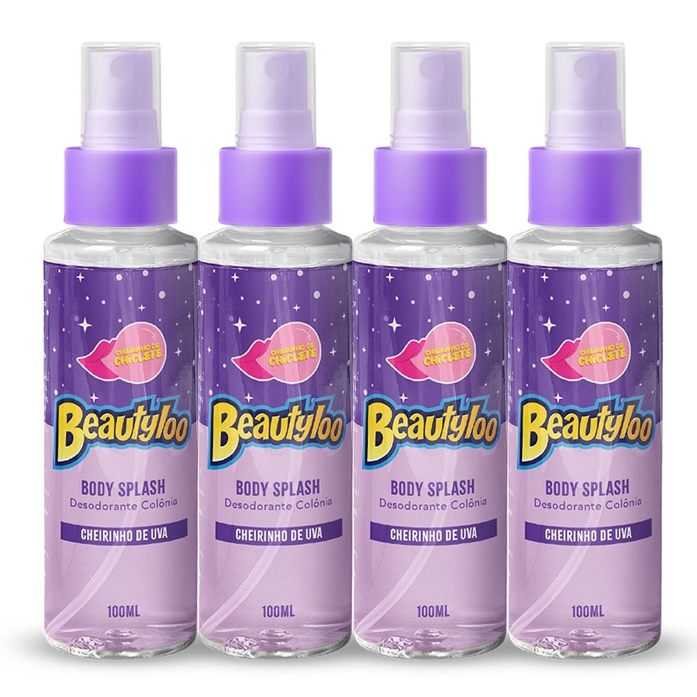 Kit 4 Body Splash Corporal Vegano Cheirinho de Chiclete Beautyloo Face Beautiful 100ml