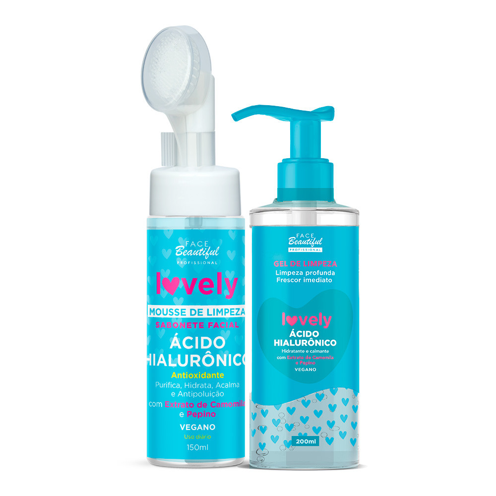 Kit Combo Cuidados Facial Com Mousse e Gel de Limpeza de Pele Lovely Face Beautiful