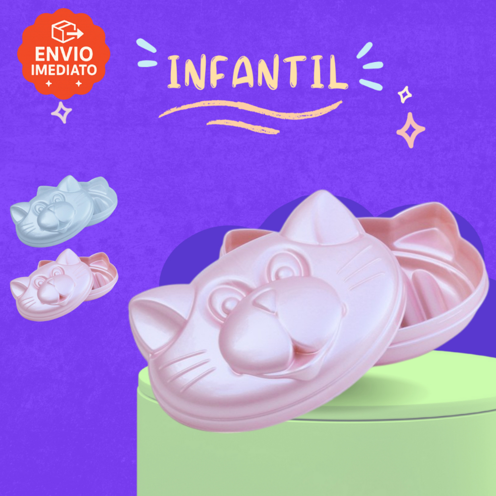 Saboneteira Infantil Menina Menino Gatinho Porta Sabonete Banheiro Decorado Plástico Antiderrapante