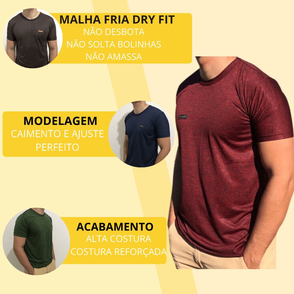 Kit 3 Camisetas Básica Masculina Camisa Manga Curta Dryfit Gola Careca Blusa Masculino Malha Fria