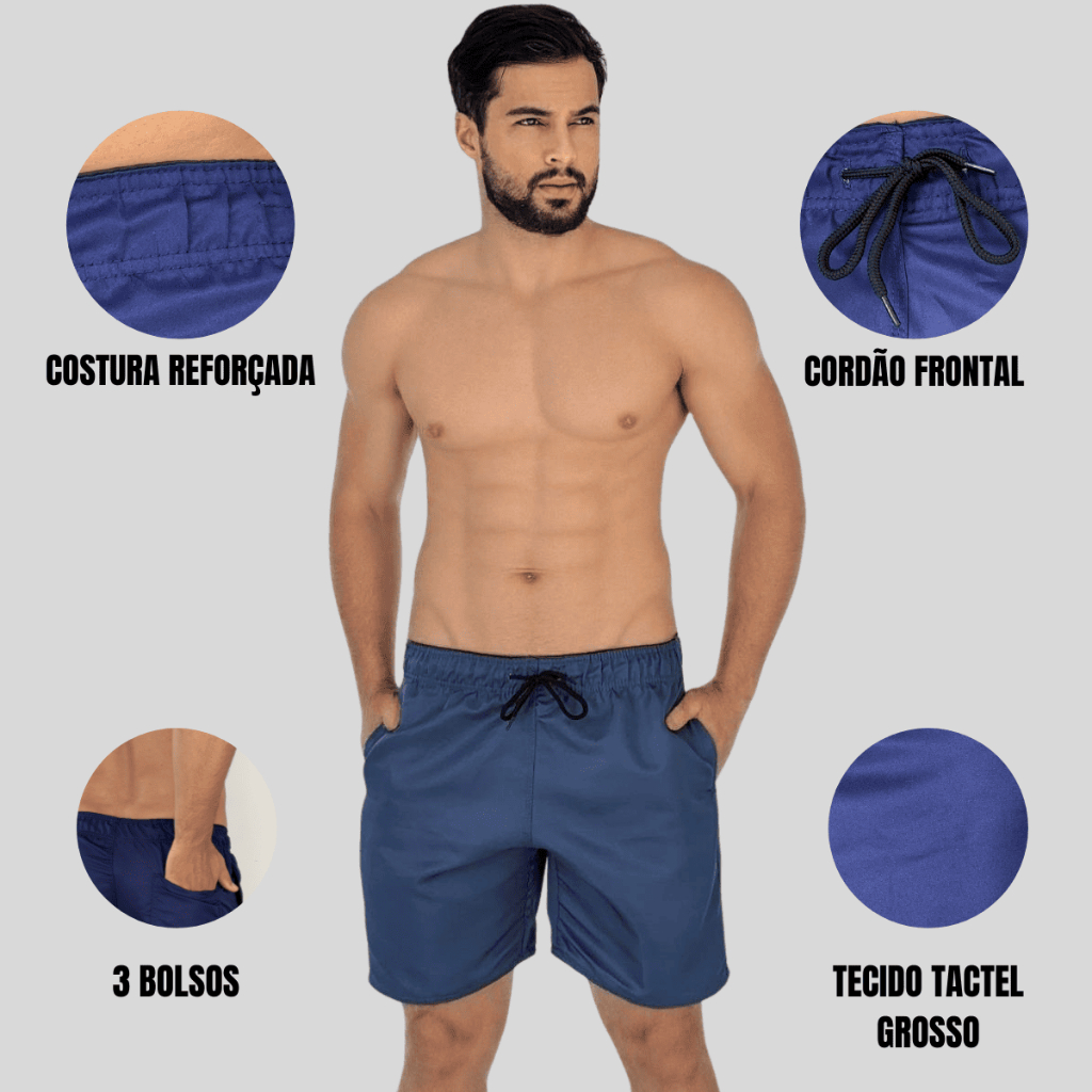 Kit 3 Short Mauricinho Tactel Bermuda Masculina Tectel Grosso Liso Com Elástico Praia Treino