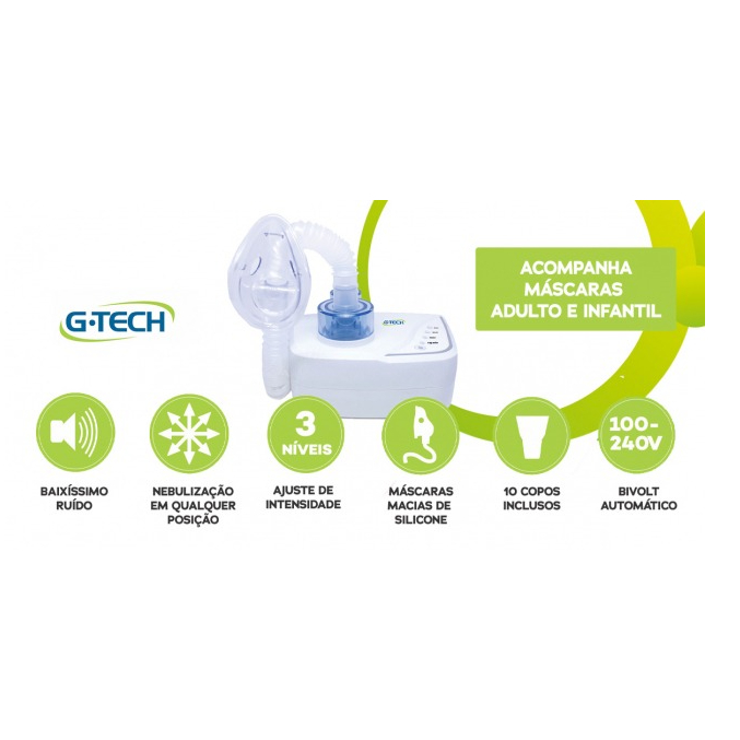 Inalador e Nebulizador G-Tech Ultraneb Desk2 e Desk DC1 - Modelos Bivolt 100V/240V Branco