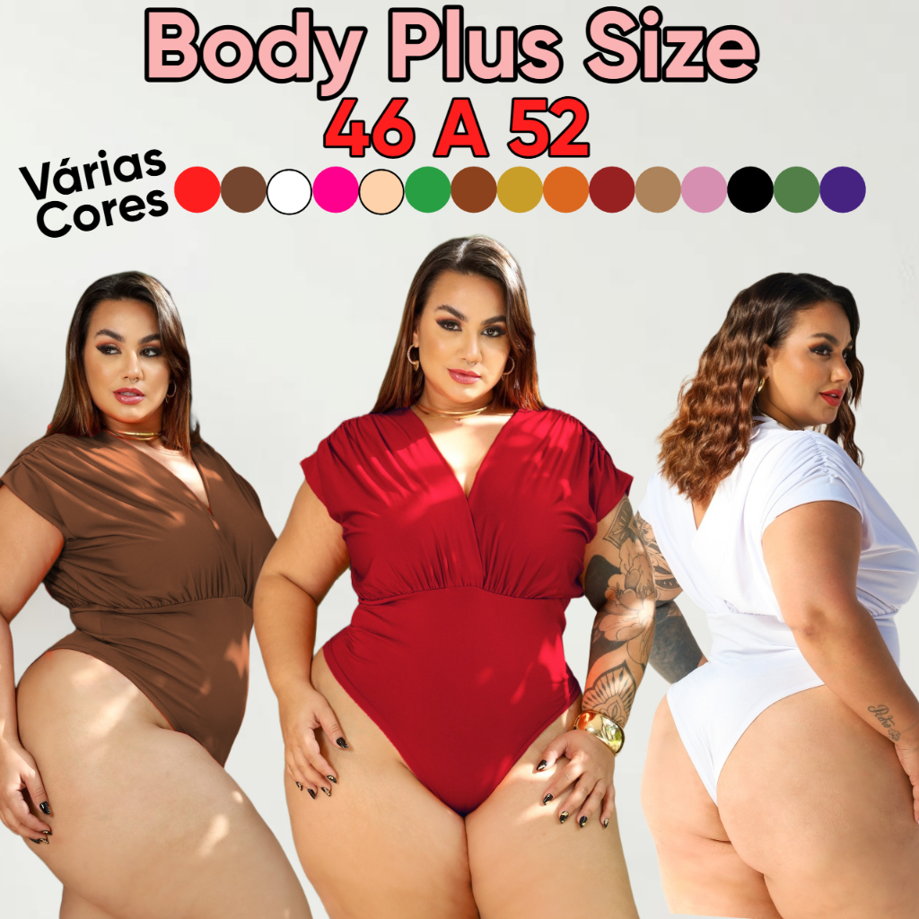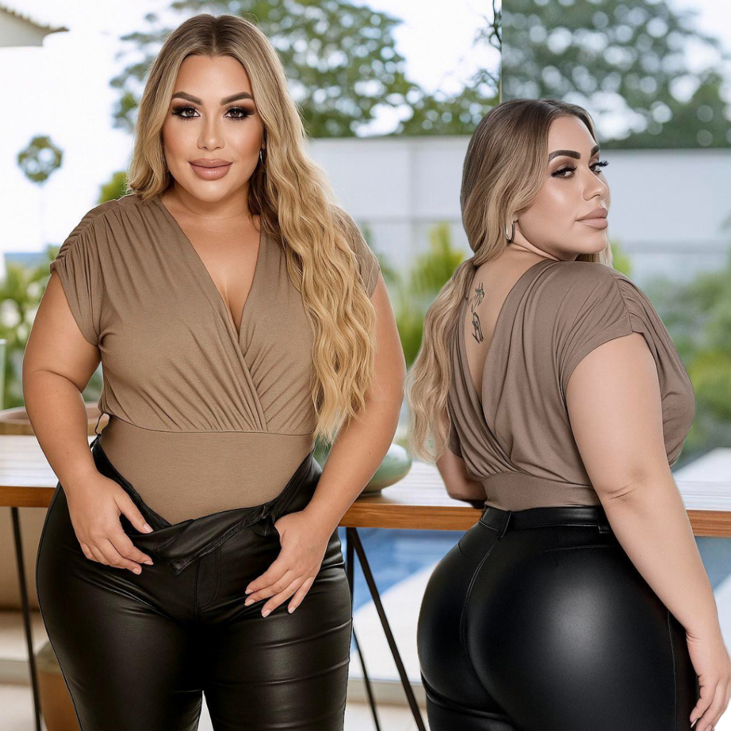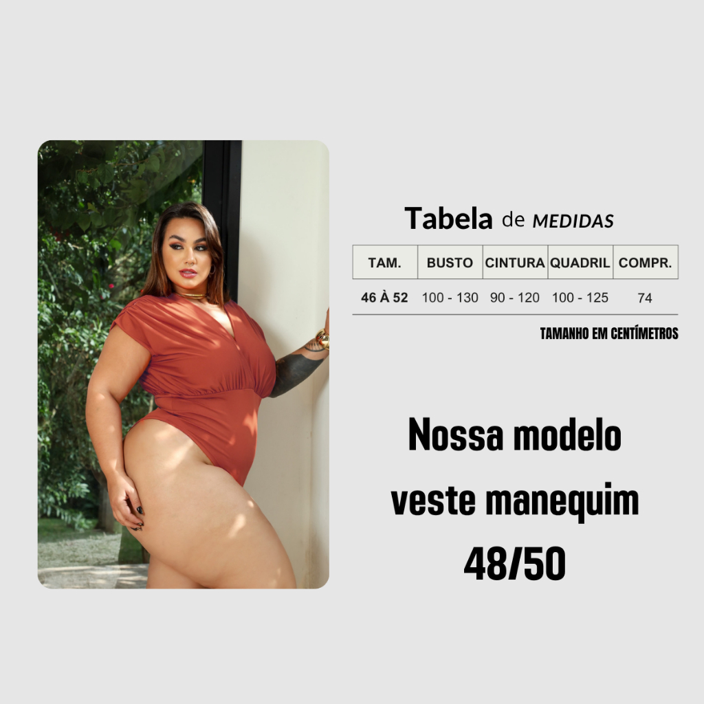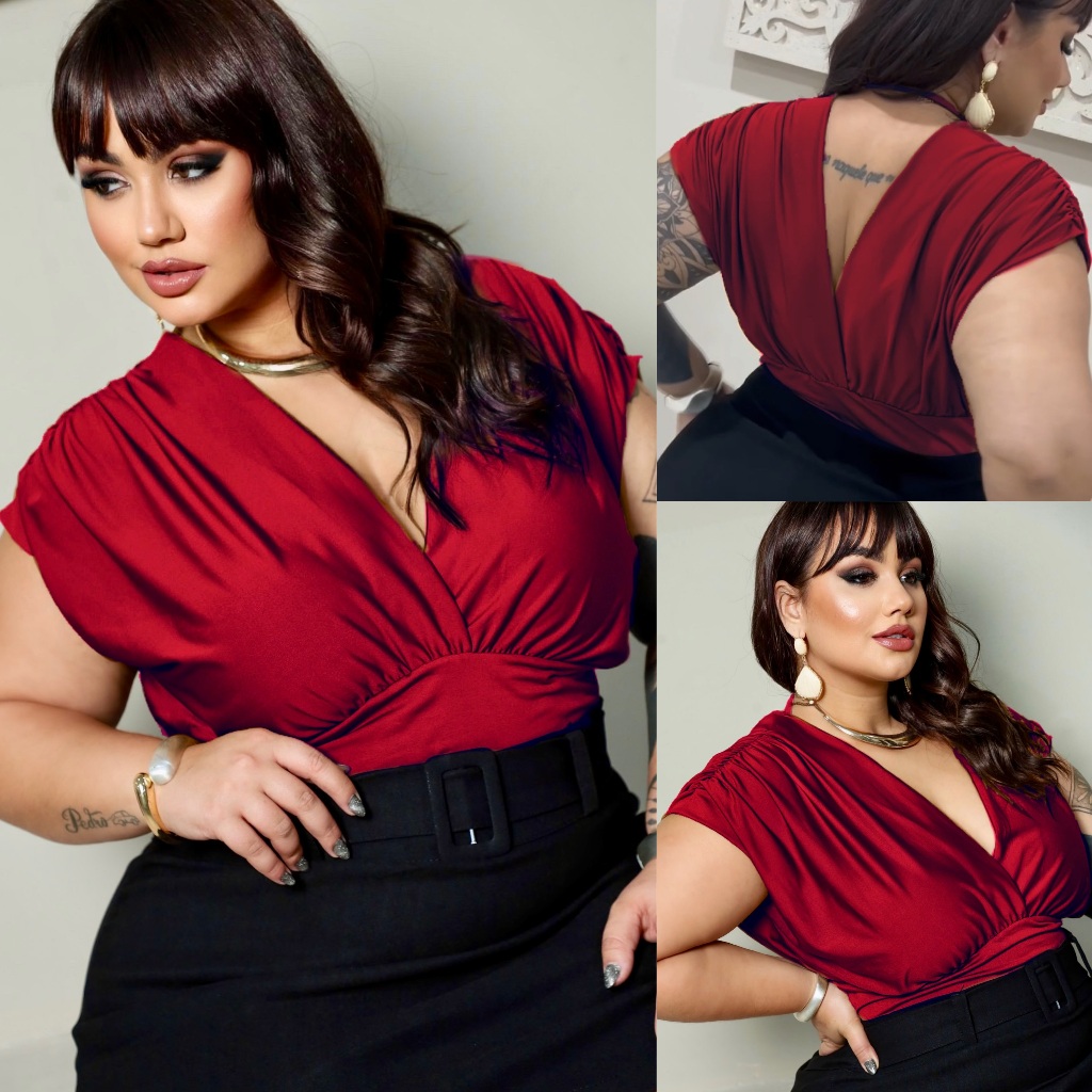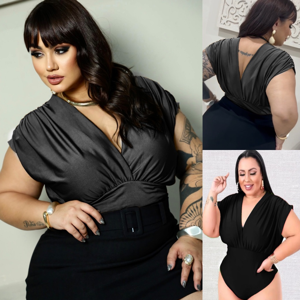 BLUSA BODY PLUS SIZE DECOTE V SEXY MANGA CURTA FRANZIDA MORCEGO 46 a 52 LOOK BALADA CURVE