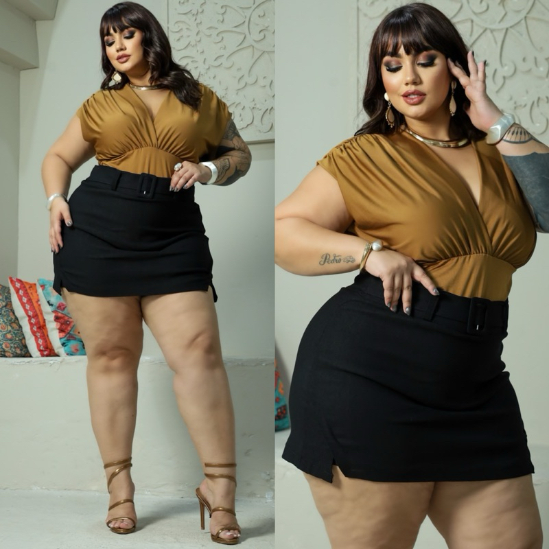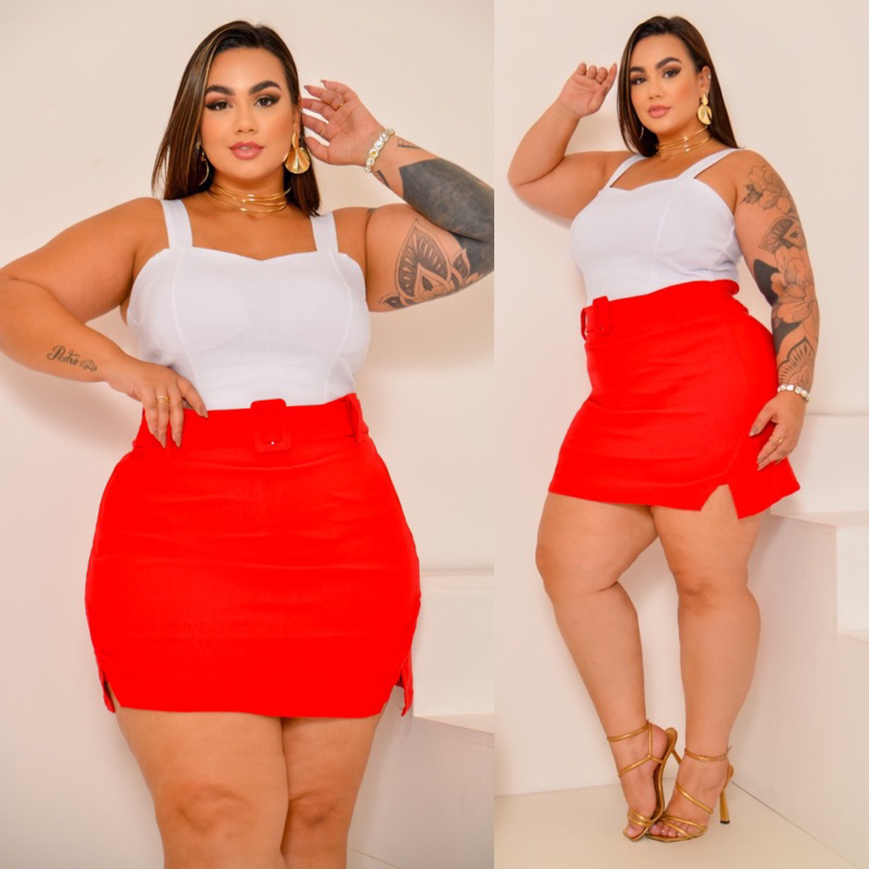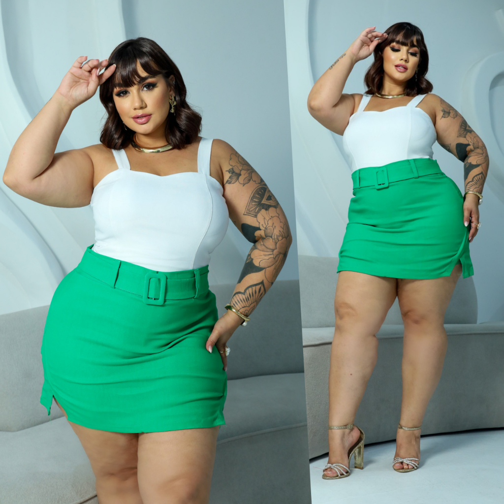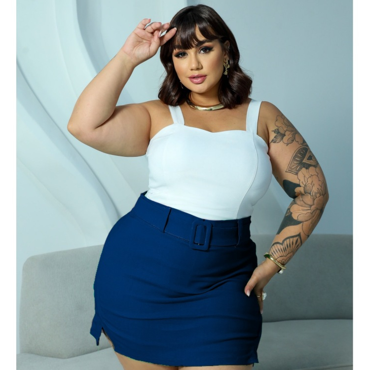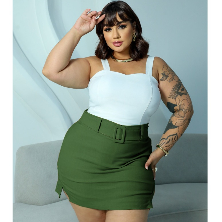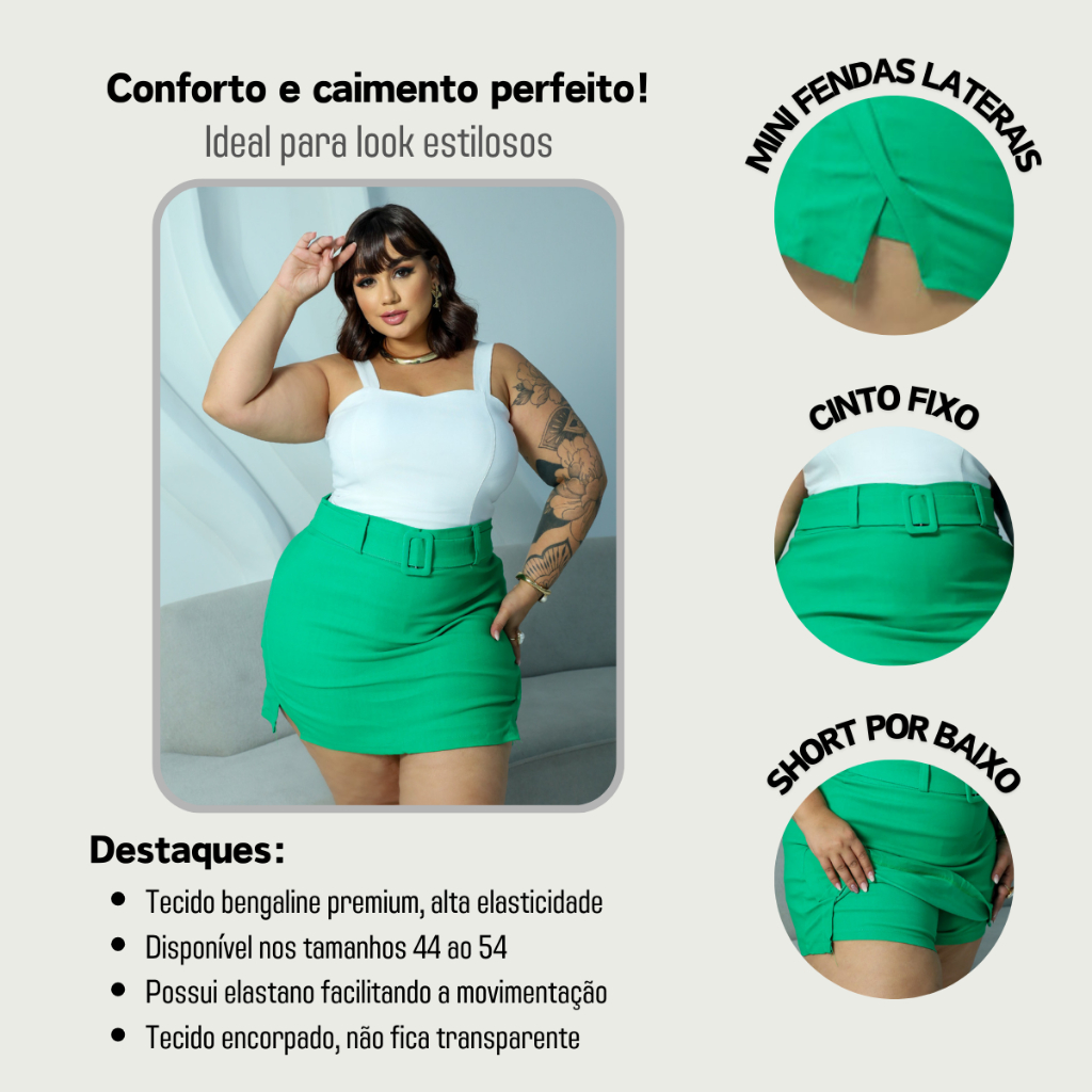 SAIA PLUS SIZE ALFAIATARIA BENGALINE LOOK BALADA FESTA DETALHE CINTO ELEGANTE FENDA LATERAL