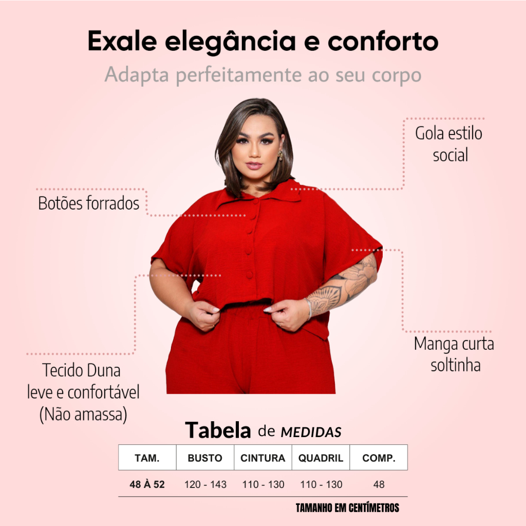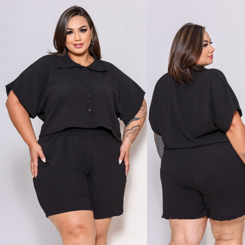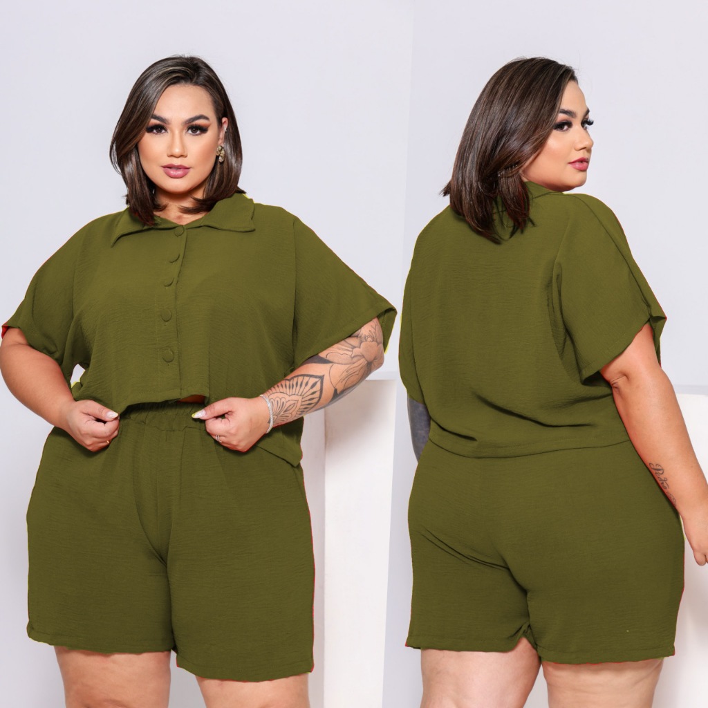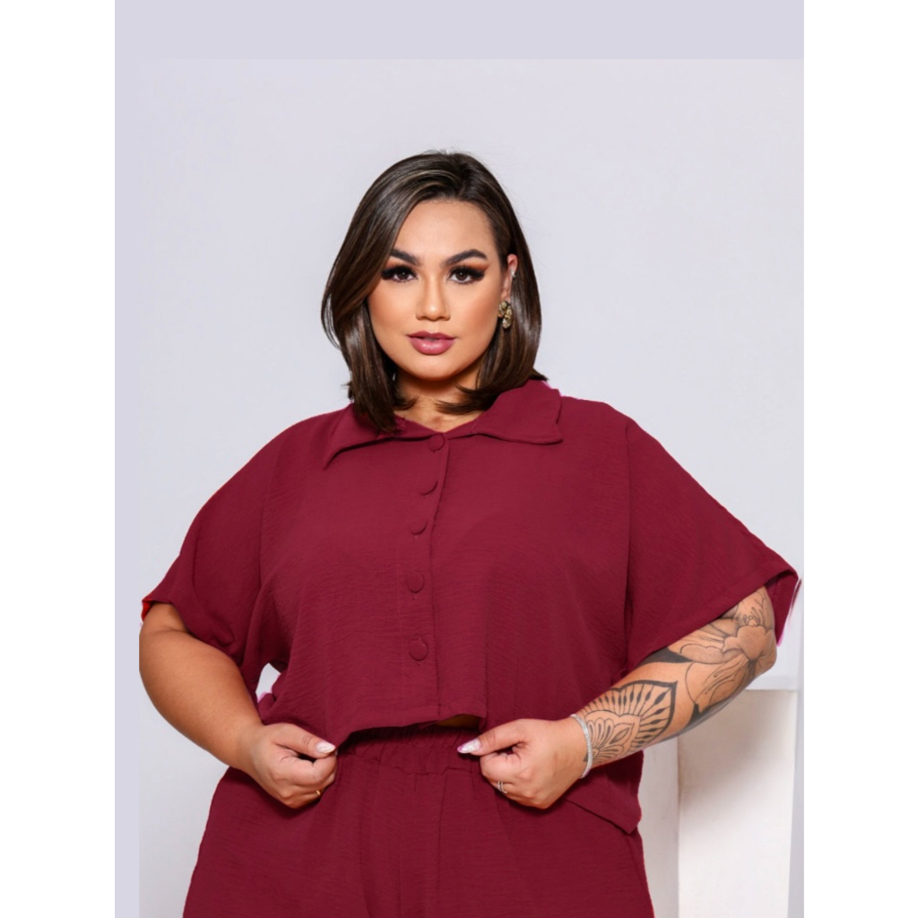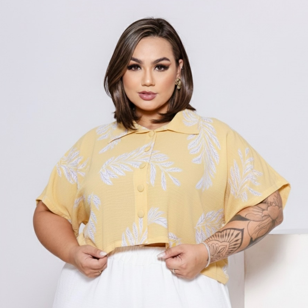 BLUSA ESTILO CAMISA PLUS SIZE MANGA CURTA BOTÕES FORRADOS TECIDO LEVE DUNA LOOK PLU SIZE