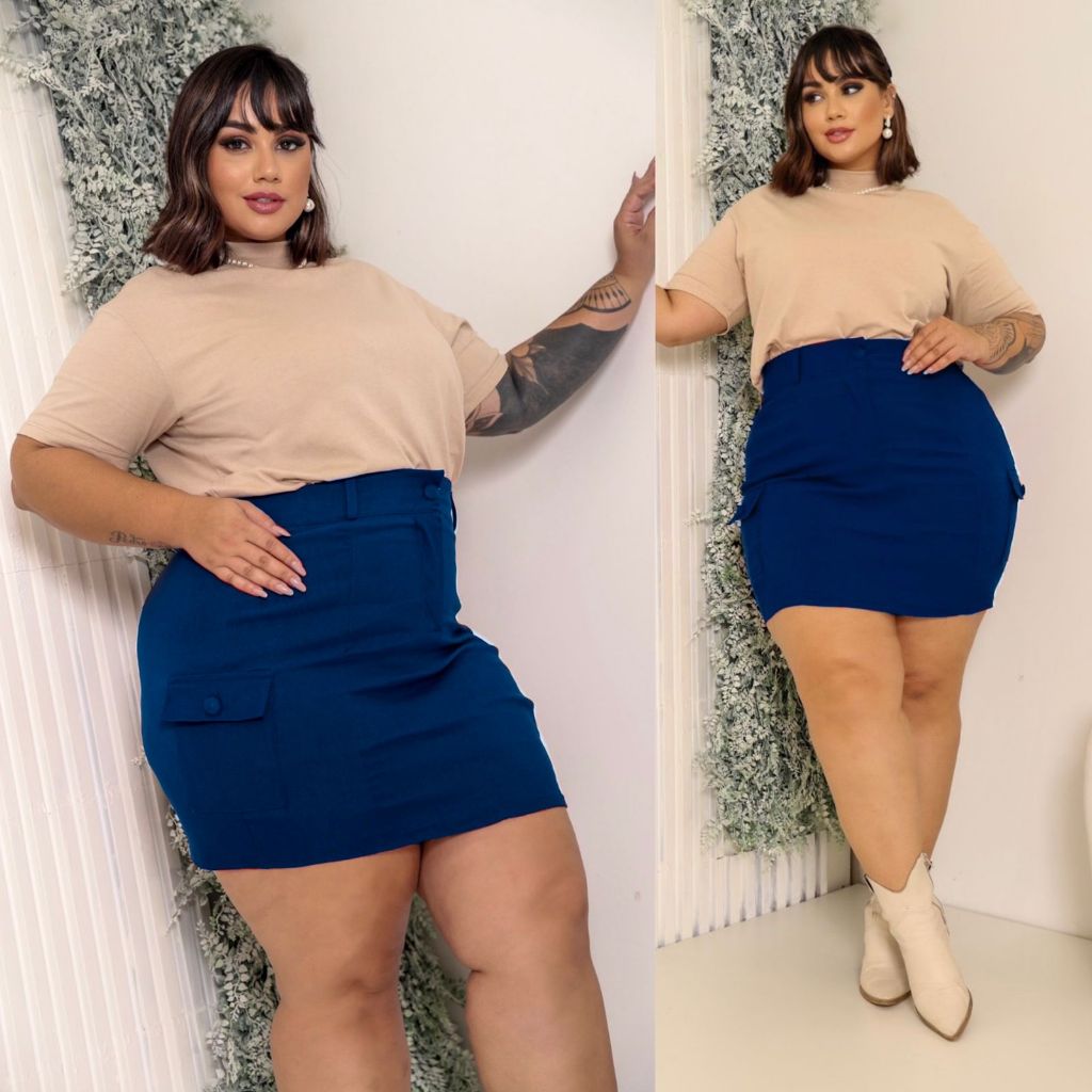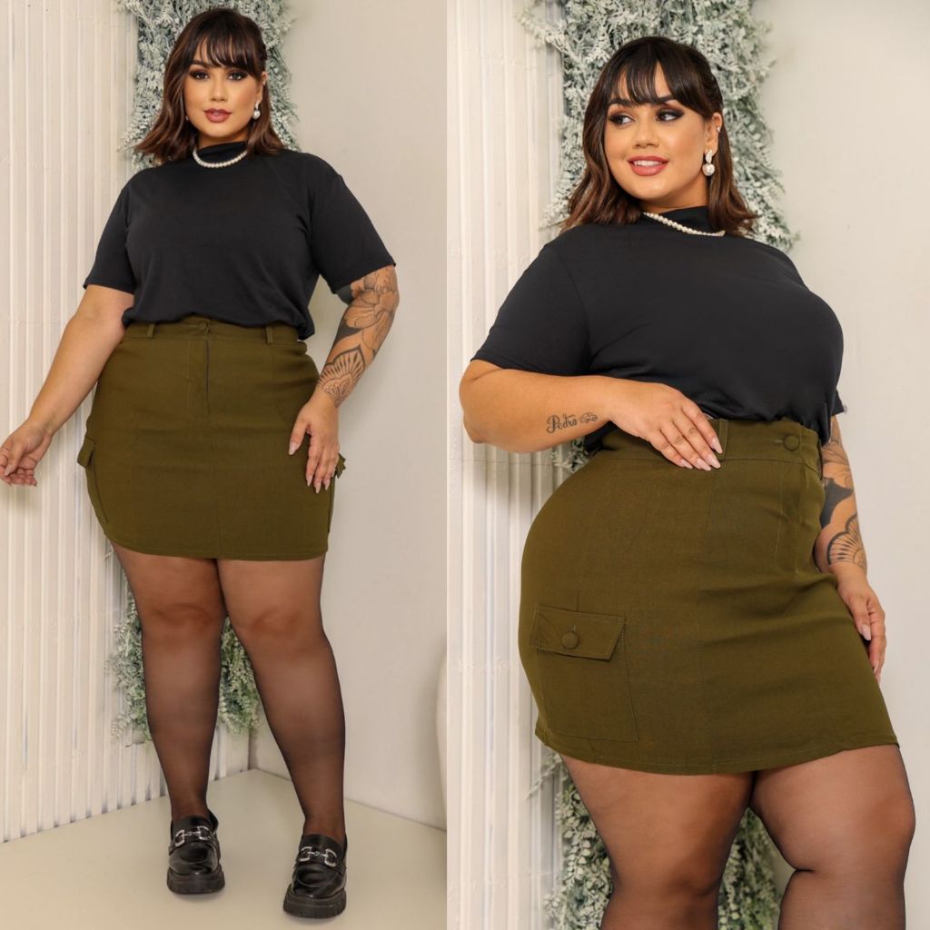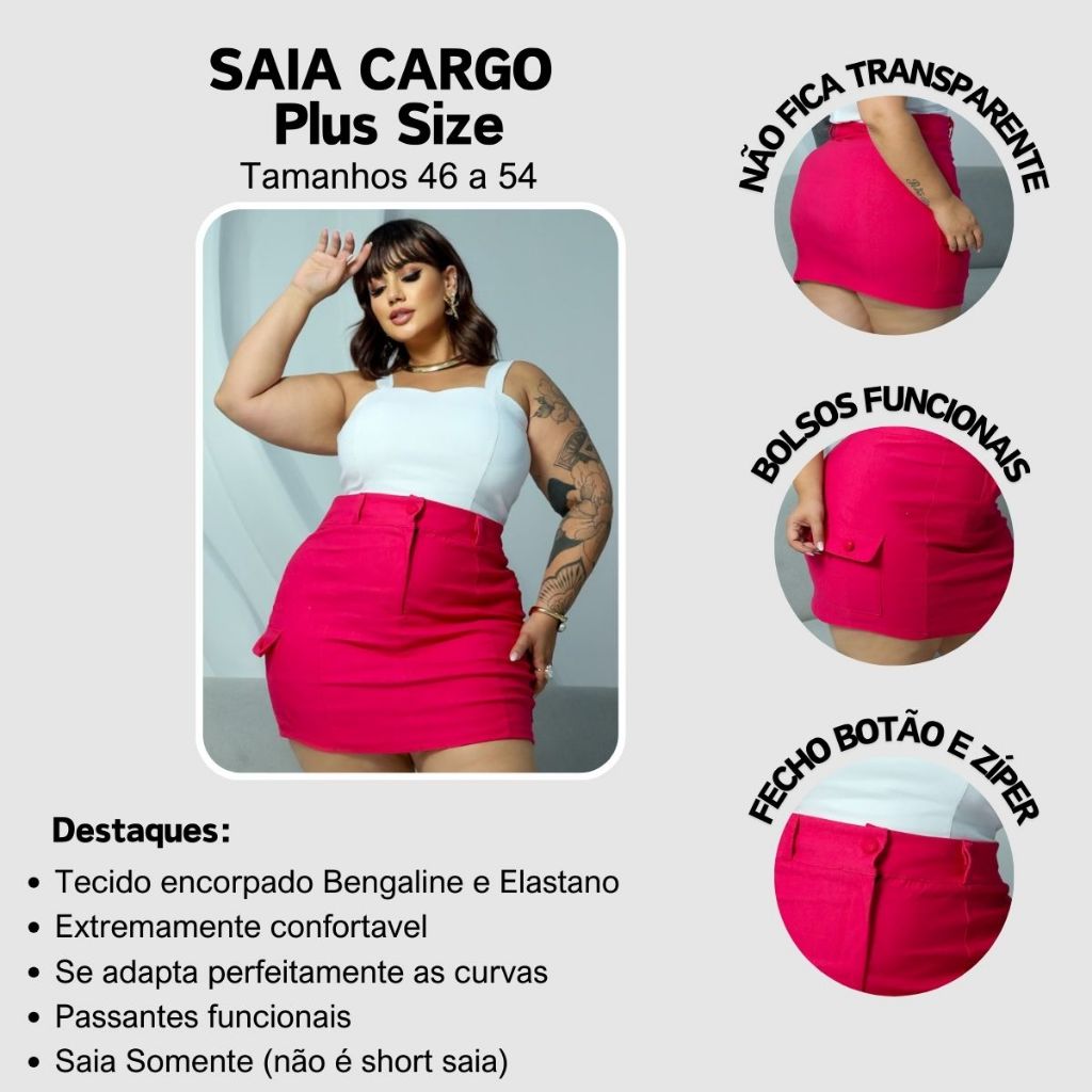 SAIA CARGO PLUS SIZE MODELO COM BOLSOS LATERAIS TECIDO BENGALINE POSSUI ELASTICIDADE 42 A 54