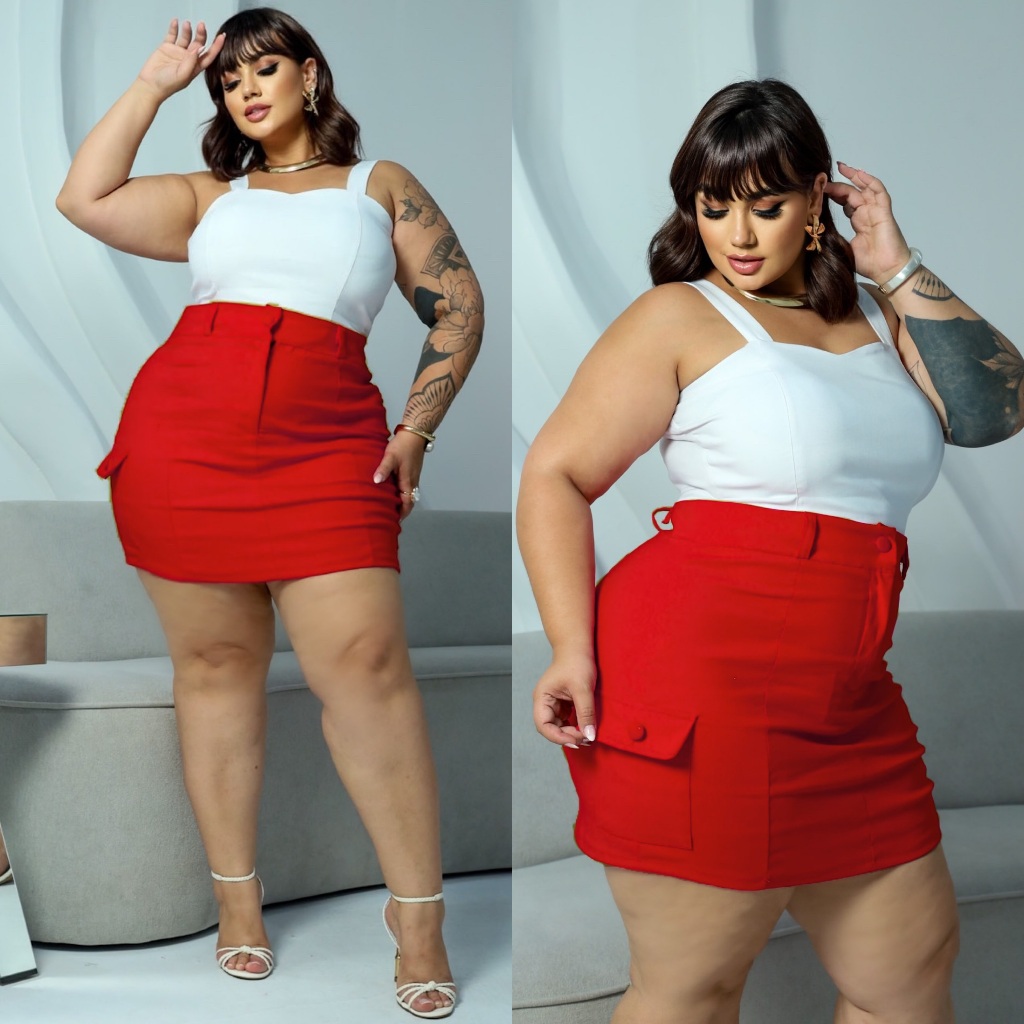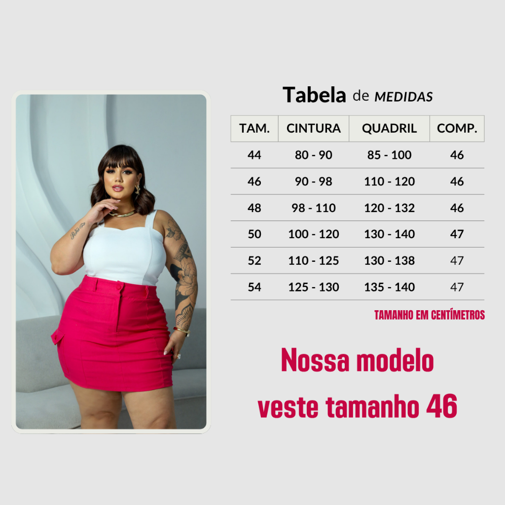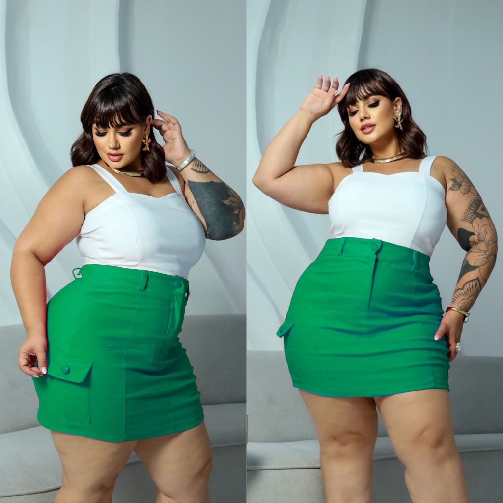 SAIA CARGO PLUS SIZE MODELO COM BOLSOS LATERAIS TECIDO BENGALINE POSSUI ELASTICIDADE 42 A 54