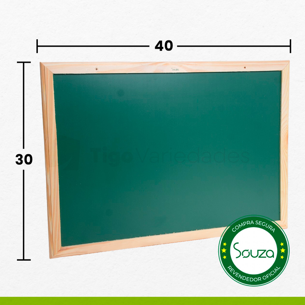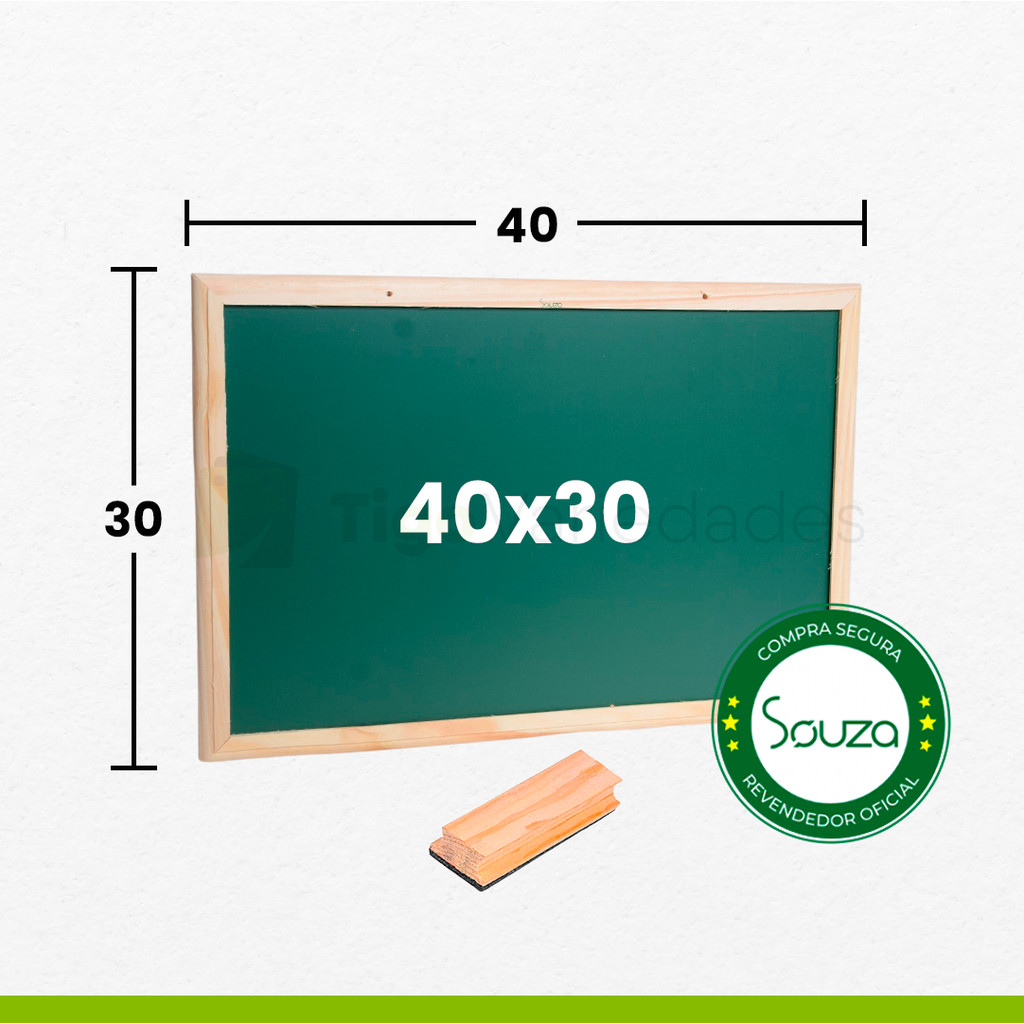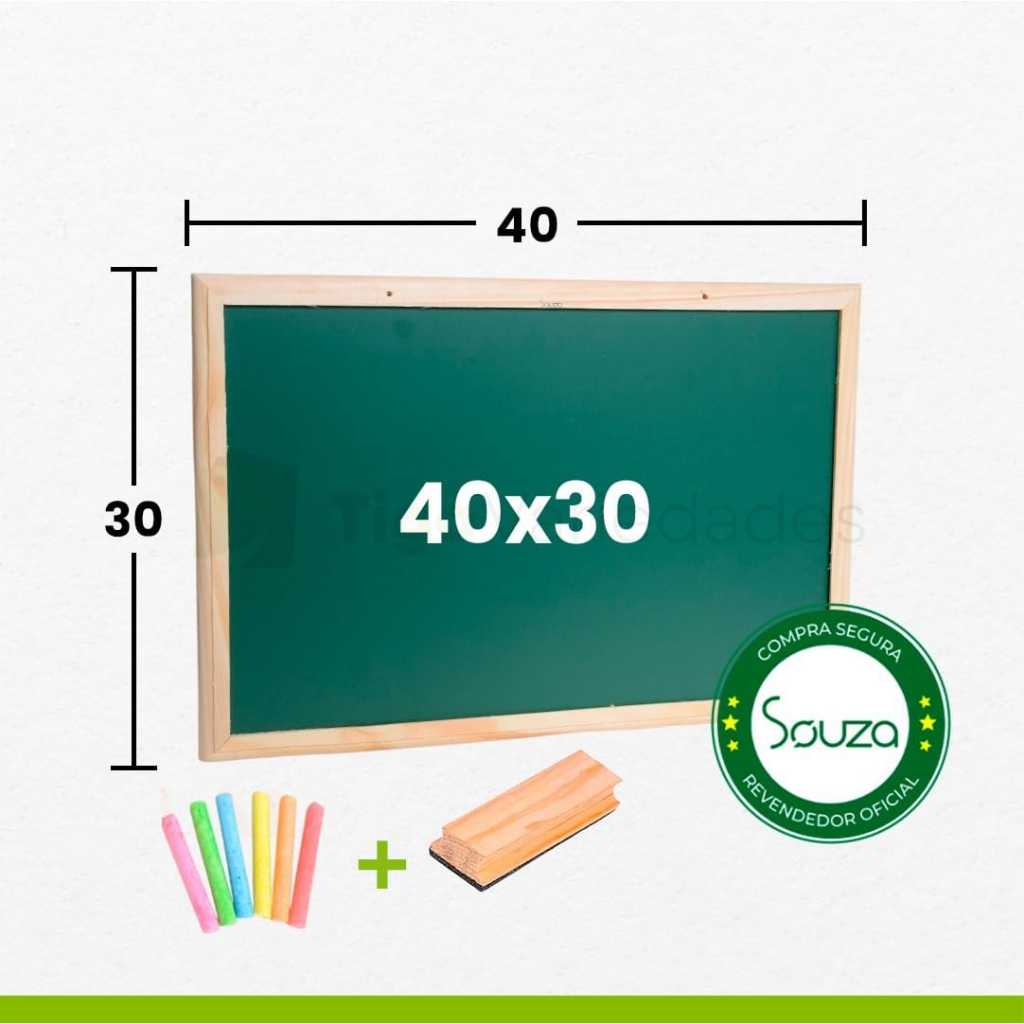 Lousa quadro escolar 40x30 com porta giz apagador e giz
