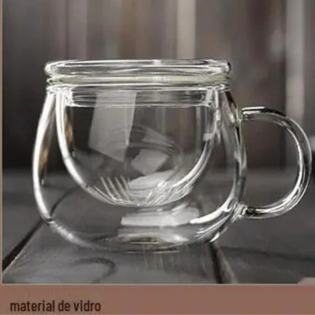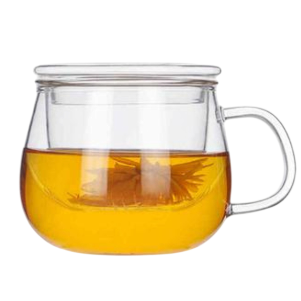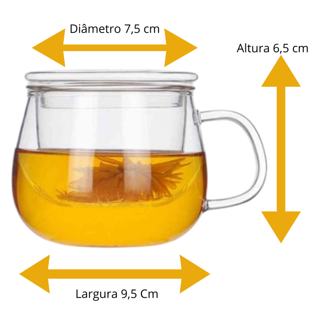 Caneca com infusor de vidro borossilicato com tampa para chá capacidade até 400ml