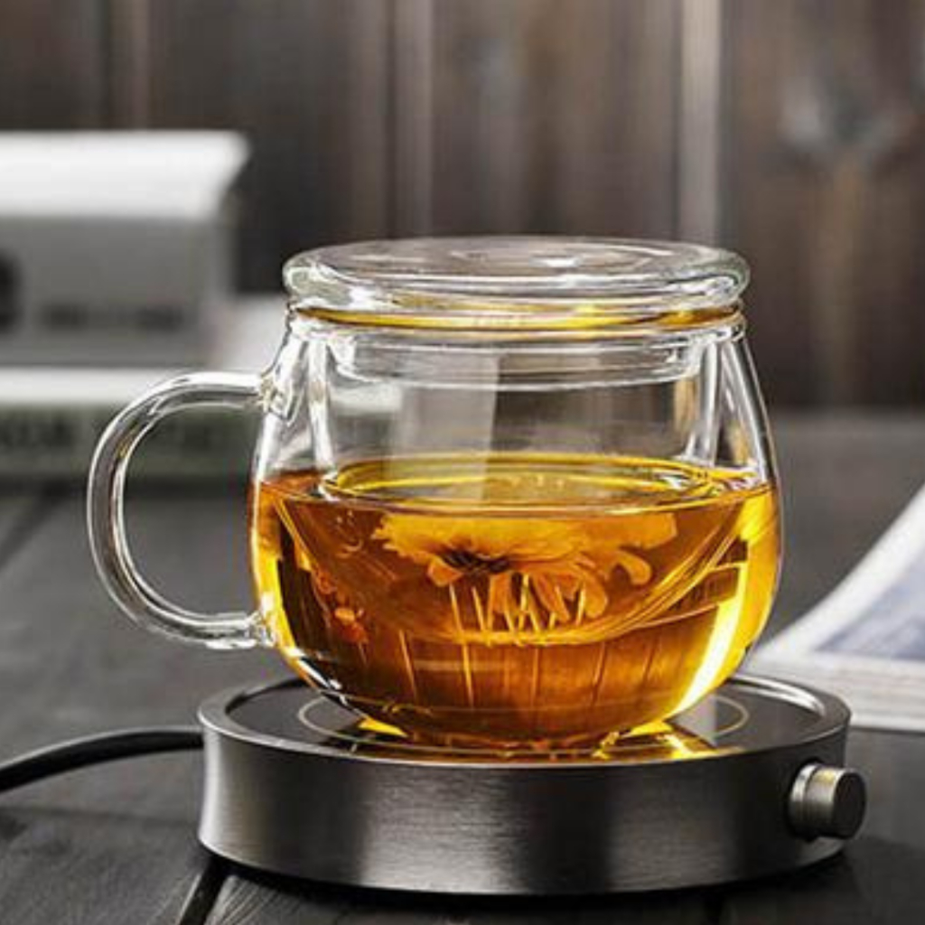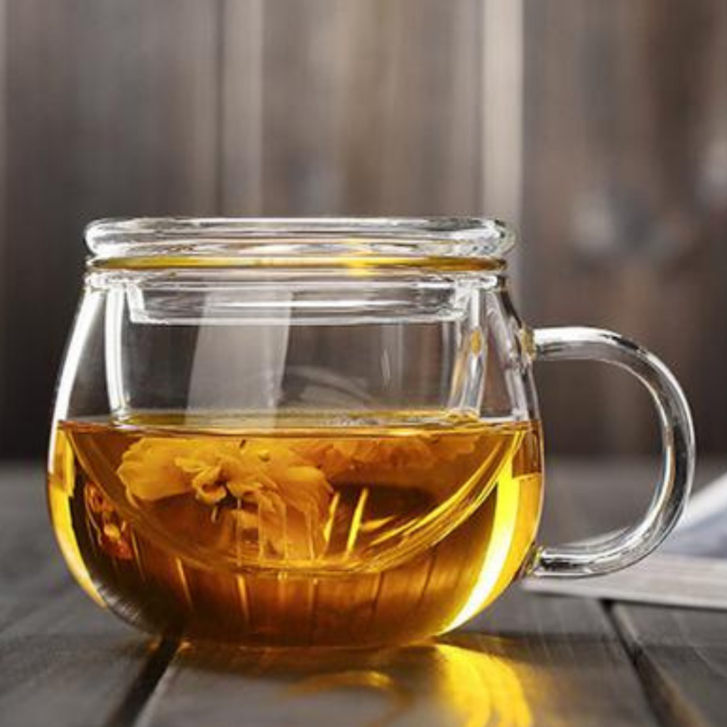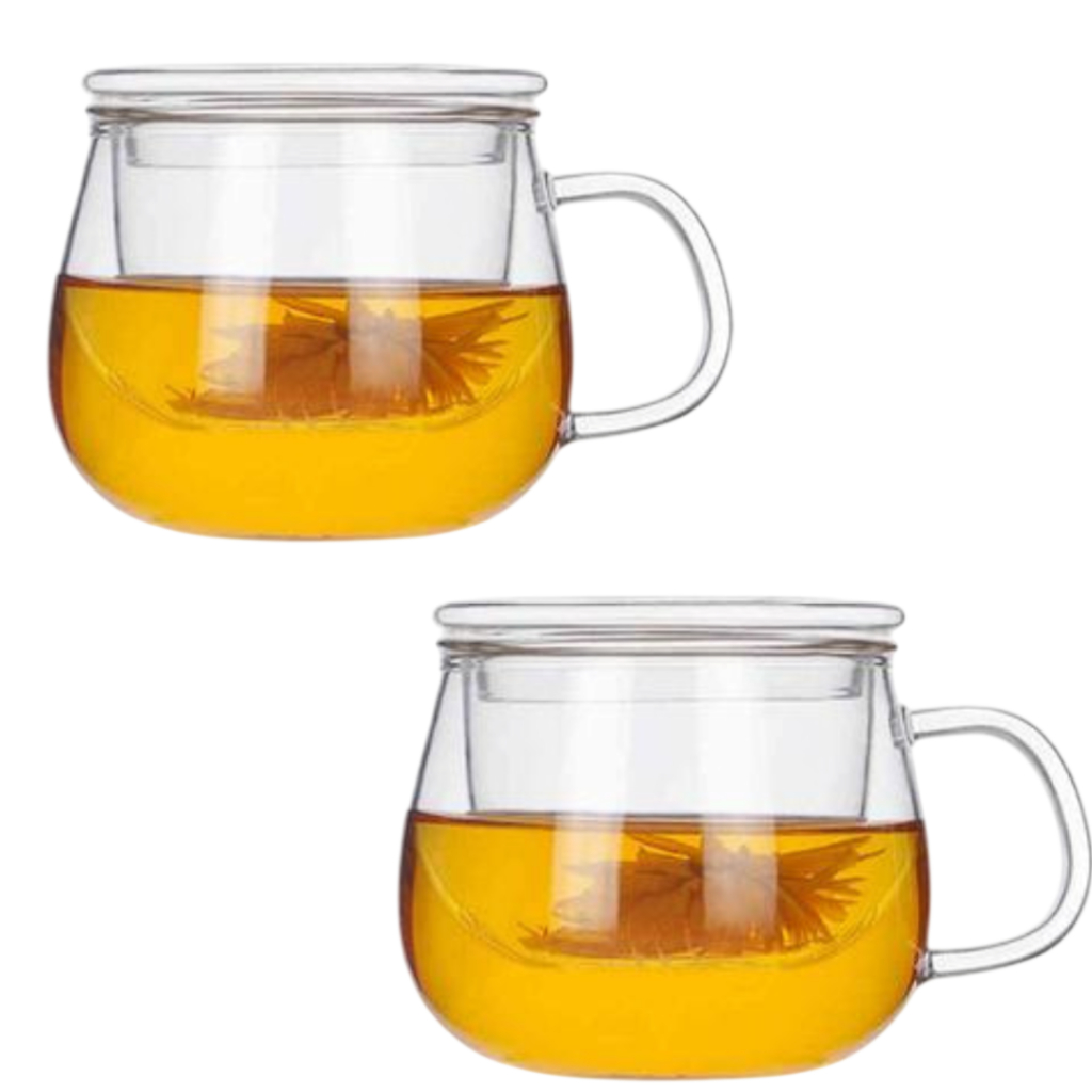 Caneca com infusor de vidro borossilicato com tampa para chá capacidade até 400ml
