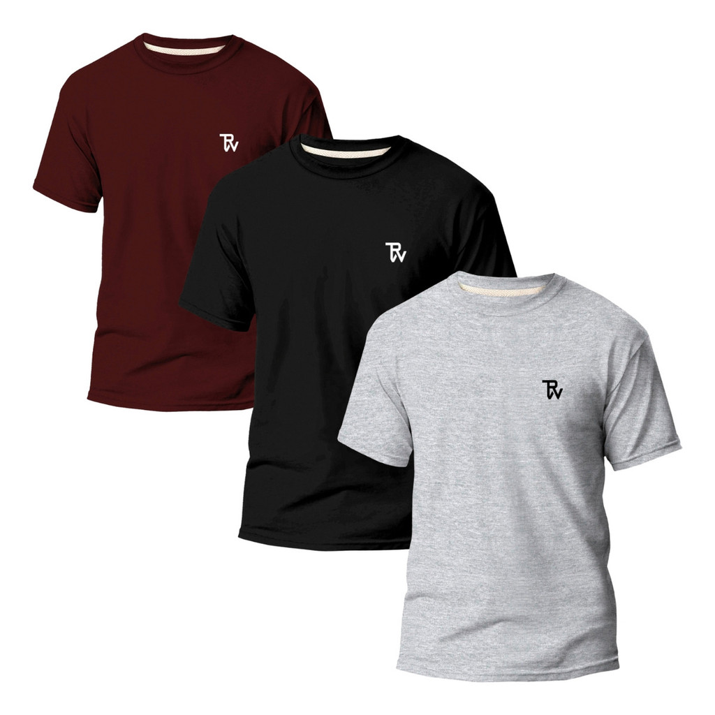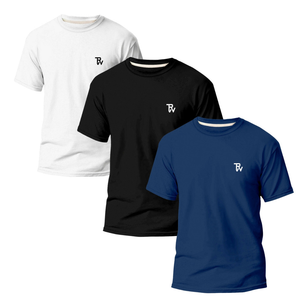 Kit 3 Camisetas Básicas Masculina Slim Algodão T01