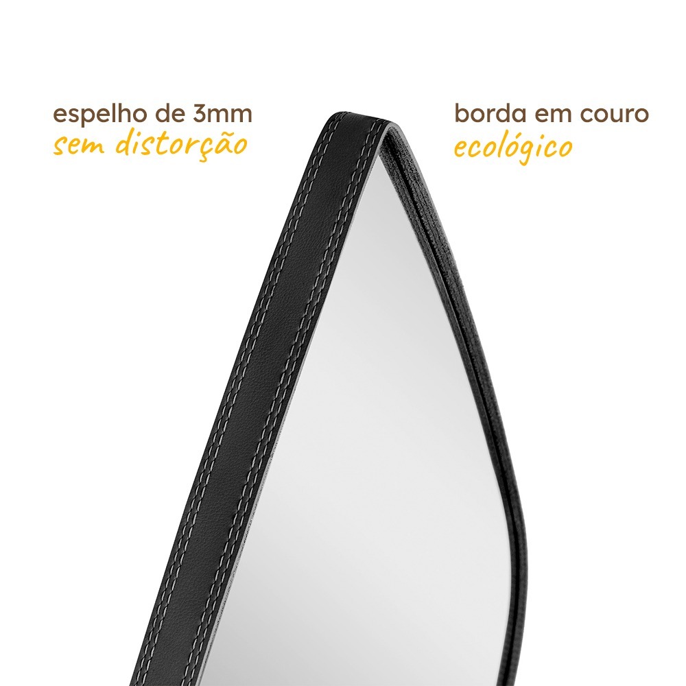 Espelho Orgânico Moderno Sala Quarto Banheiro Lavabo Retrô 64x44cm em Couro 3cm - Mod. Gota