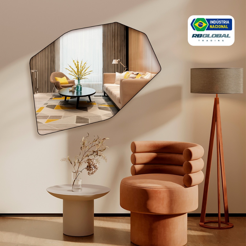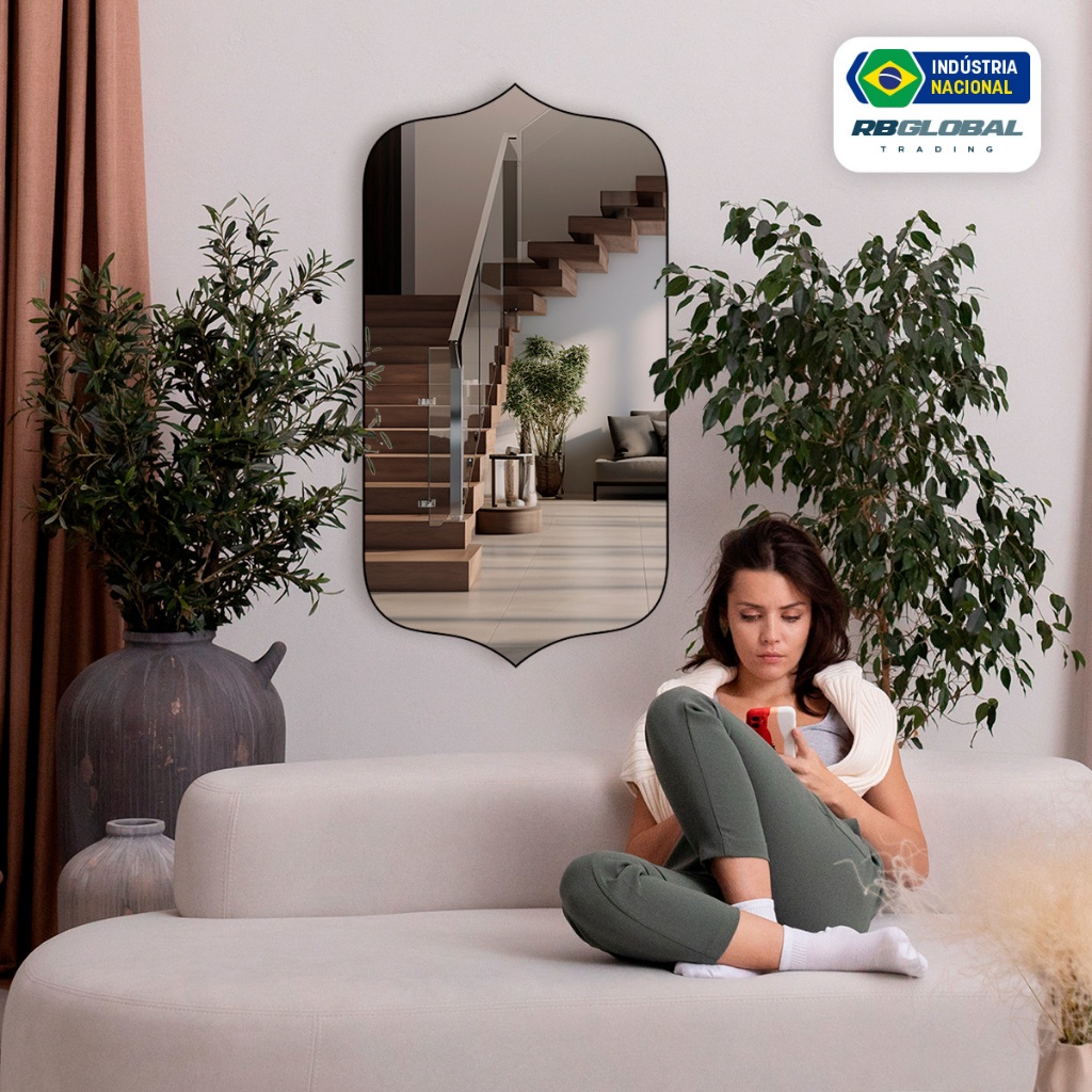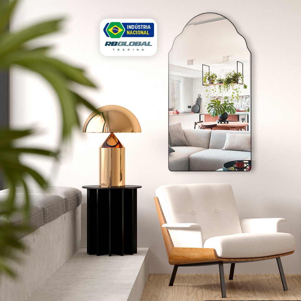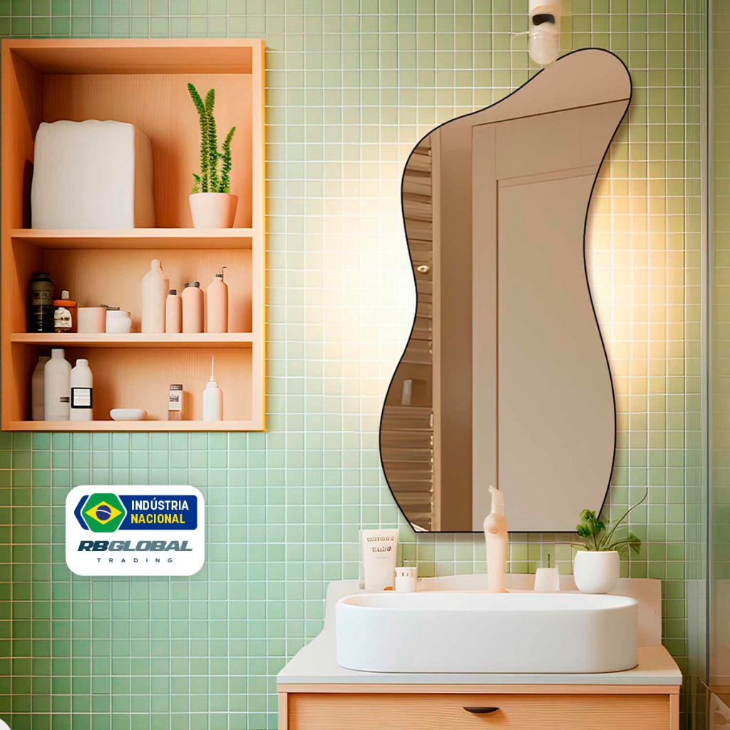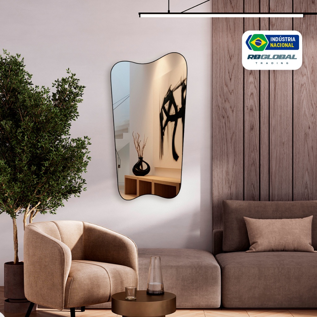 Espelho Grande Decorativo Orgânico Moderno Lapidado 60x110cm Luxo Lavabo Quarto Sala Banheiro
