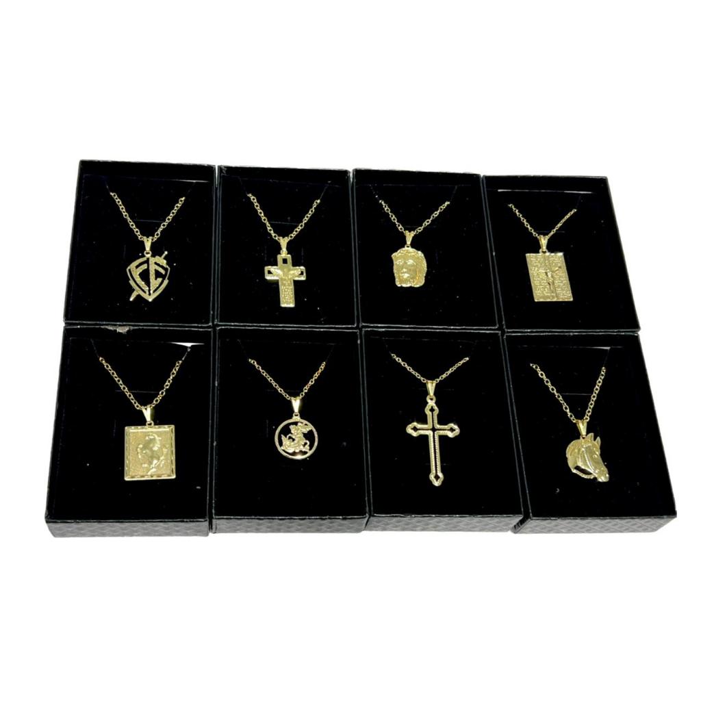 Kit Semi Joias C/ 8 Correntes Cordão Masculinos C/ Pingente Variados Folheados A Ouro 18K P/ Revenda