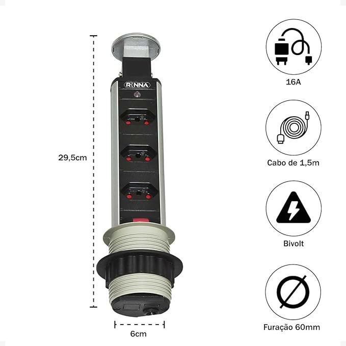 Torre de Tomadas Renna Multiplug com 3 Tomadas Prata