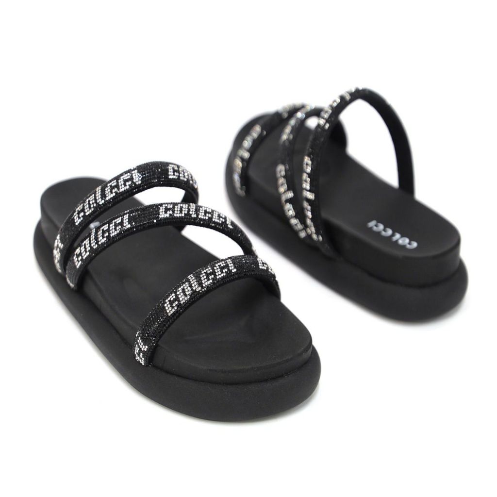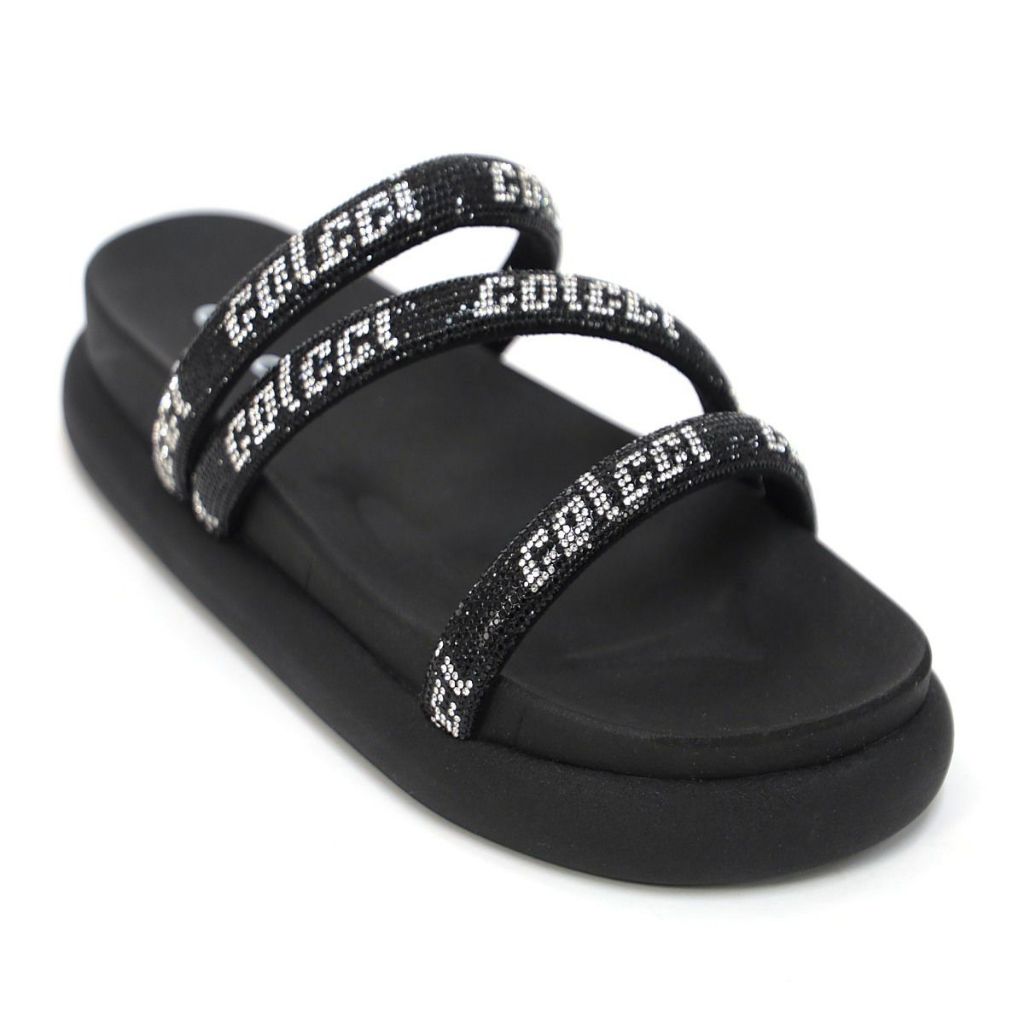 Sandália Dani Colcci Techfit Três Tiras em Cristais Abalouada