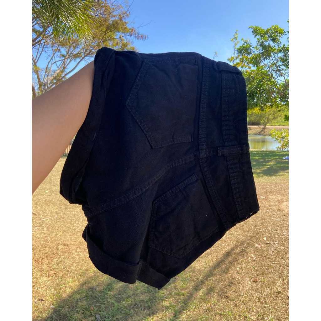 Short Jeans Feminino Preto Básico - Modelo Liso com Bainha Dobrada