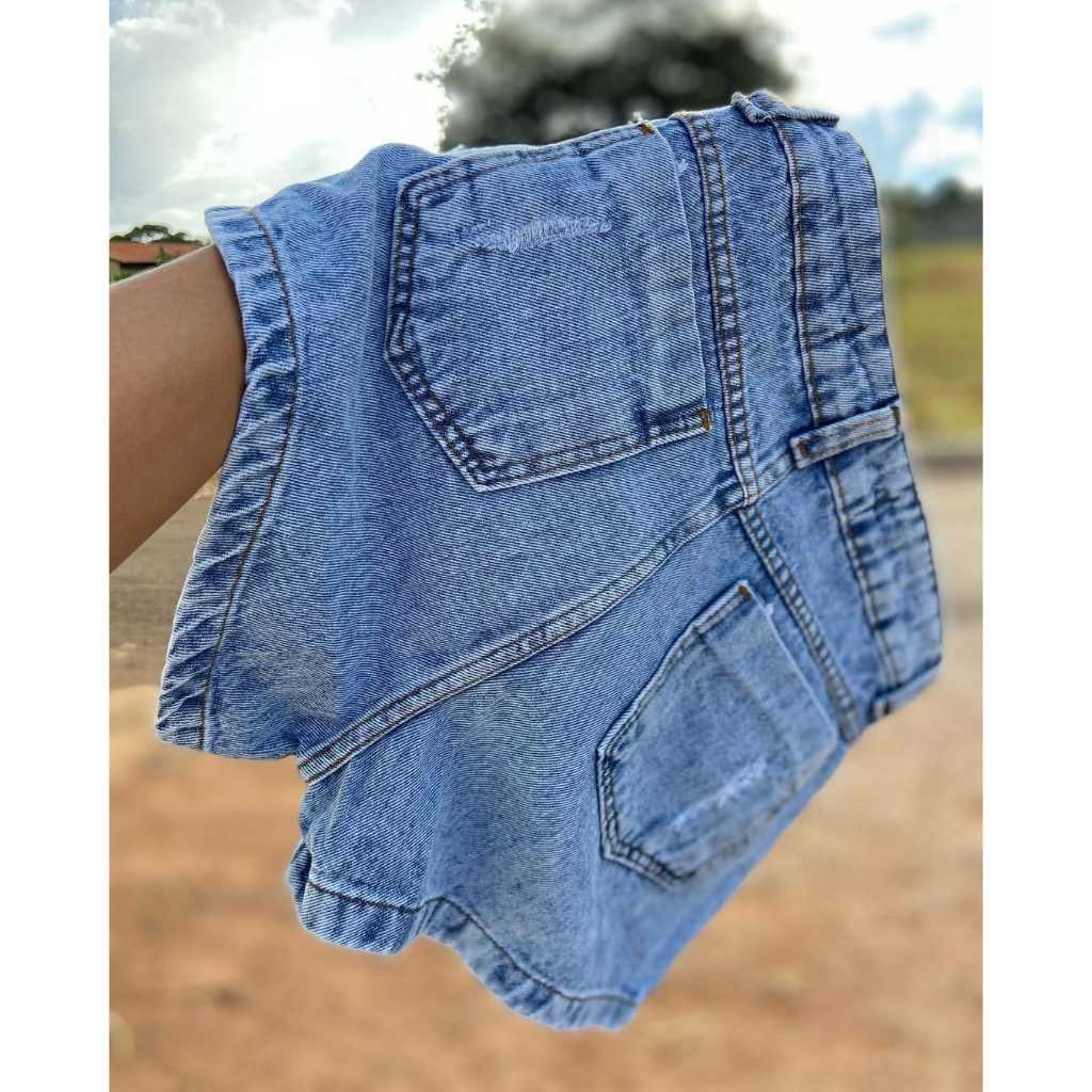 Short Jeans Feminino Azul Básico - Modelo Liso com Bainha Dobrada